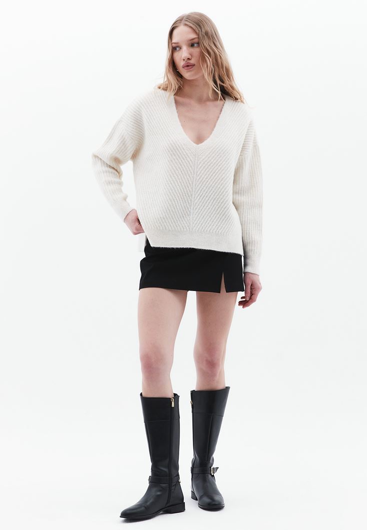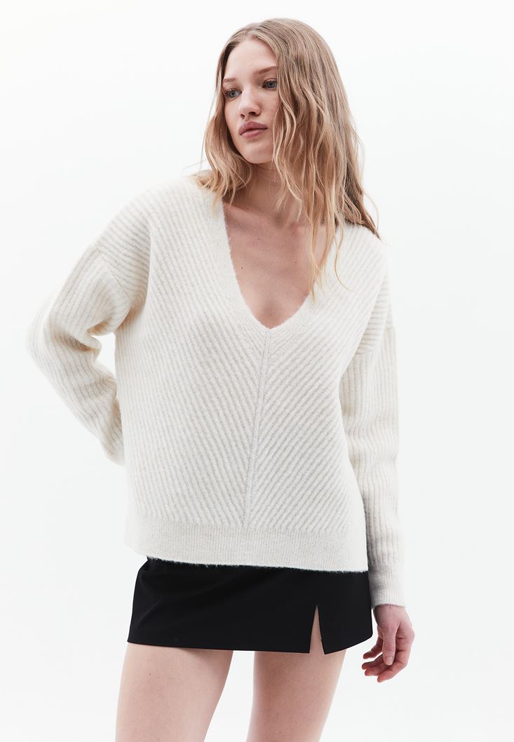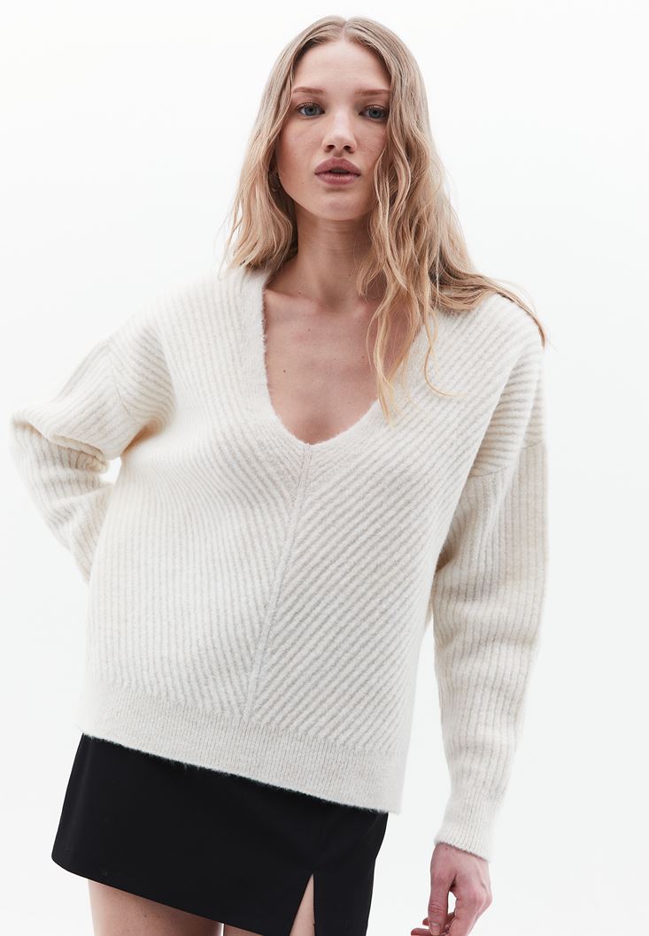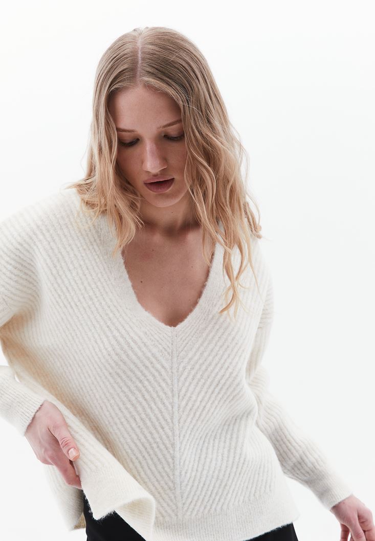 Fit: Loose / Yaka: V-Neck / Kol: Long Sleeve