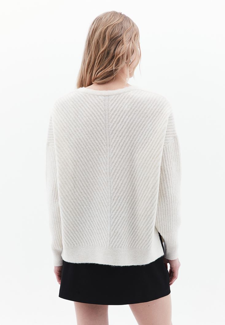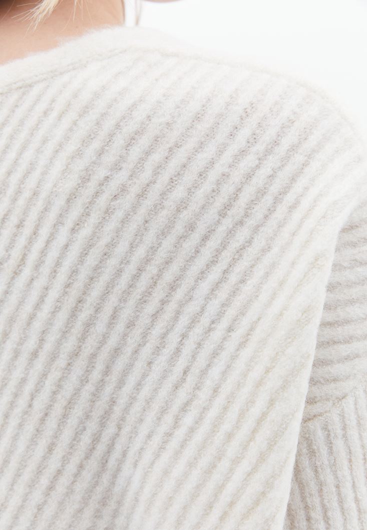 • Bayan Krem Yün Karışımlı Kazak