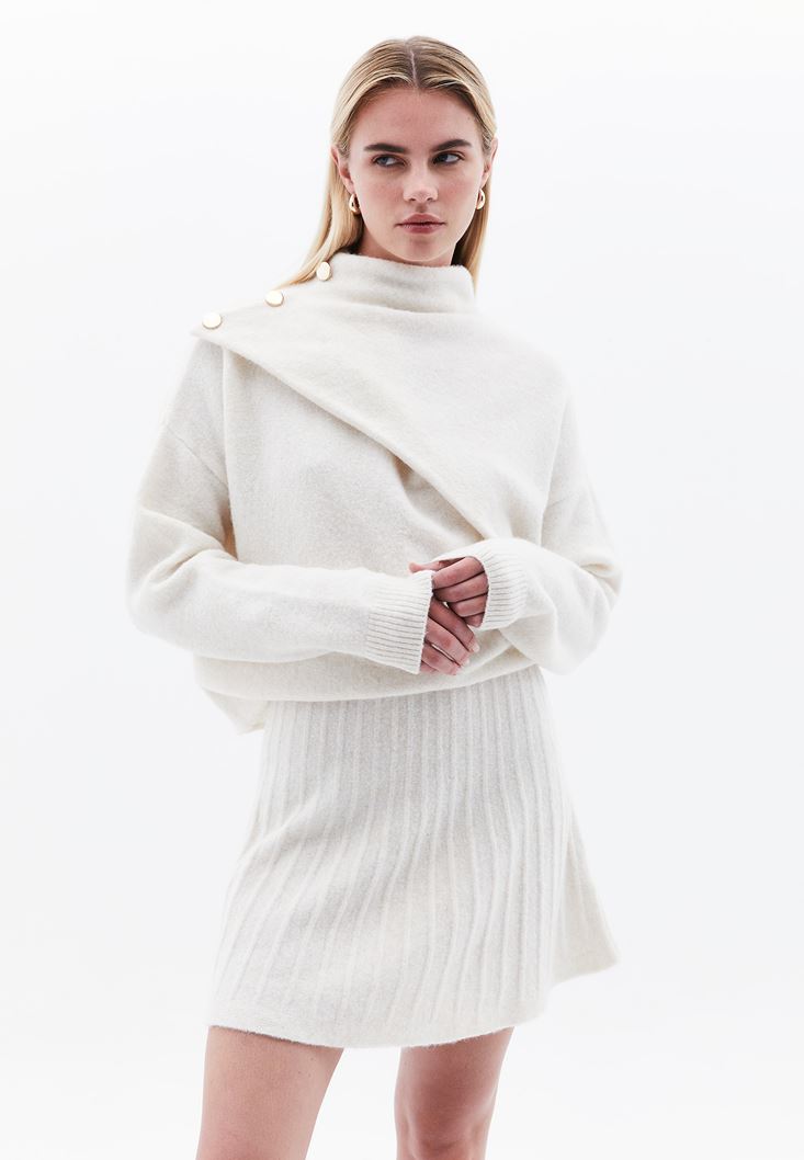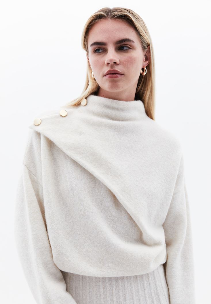 • Bayan Krem Yün Karışımlı Kazak