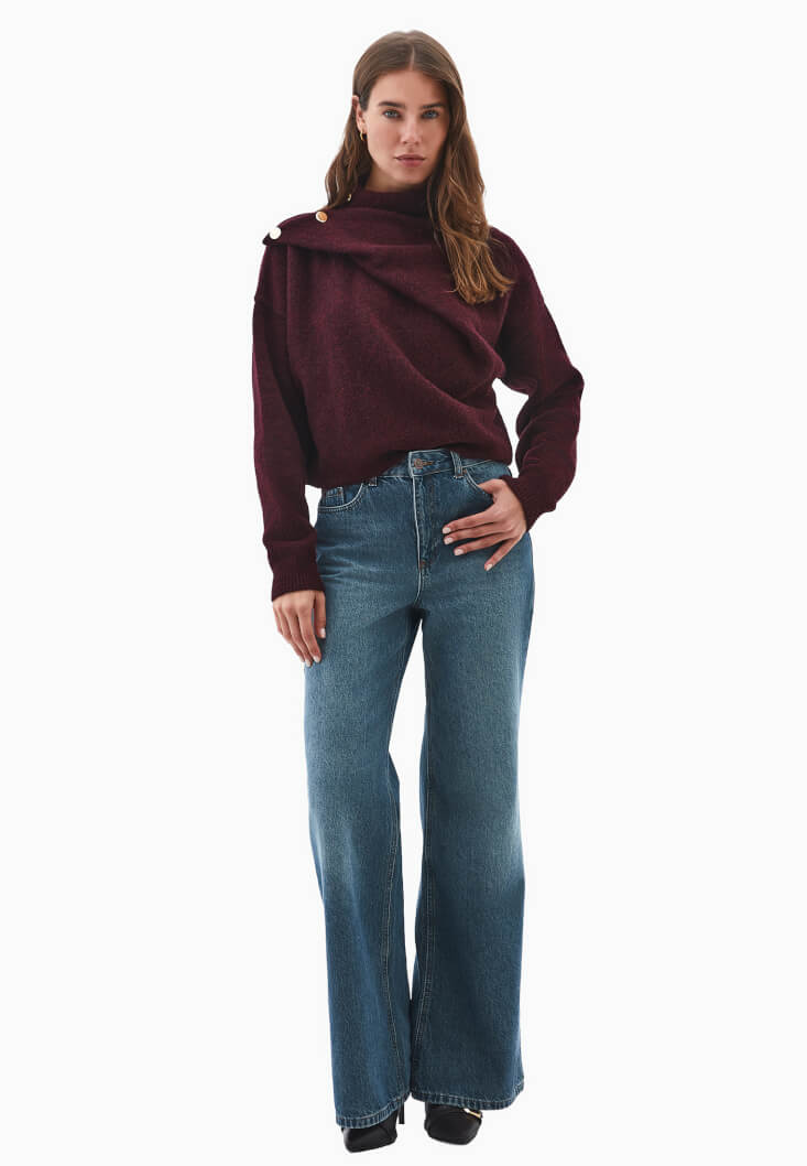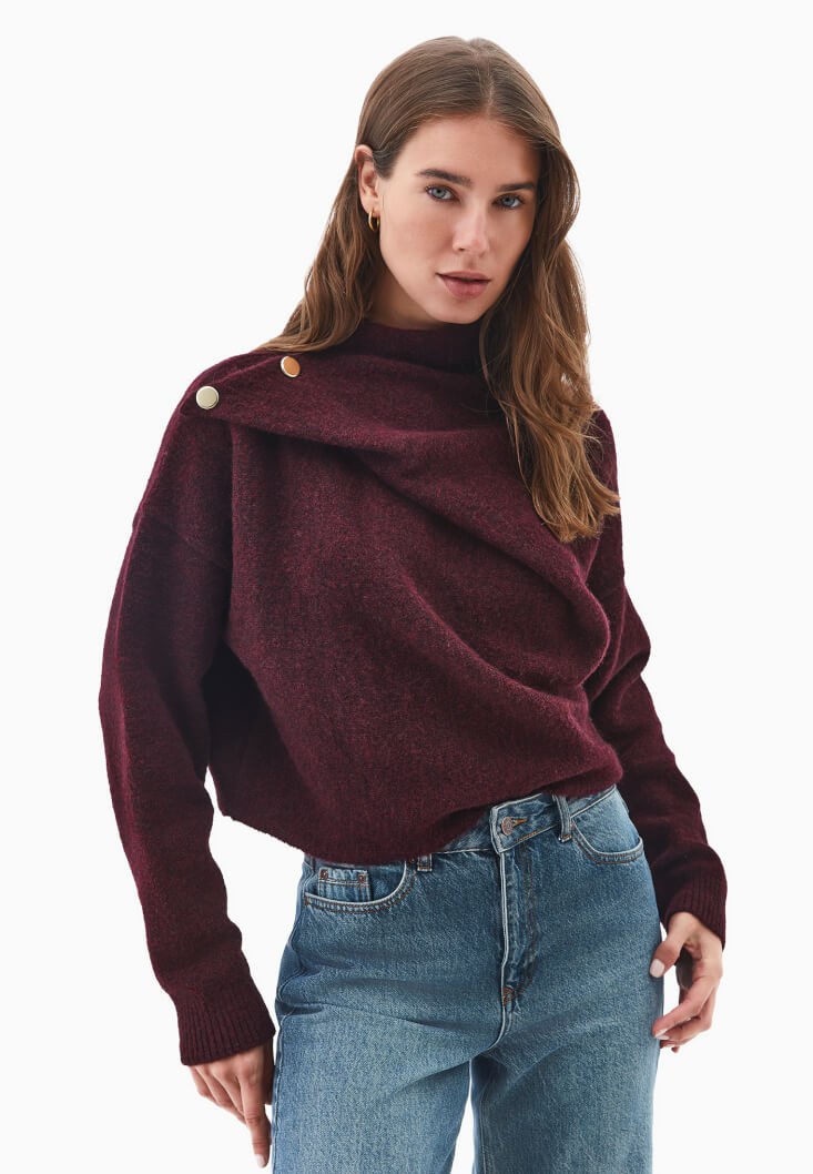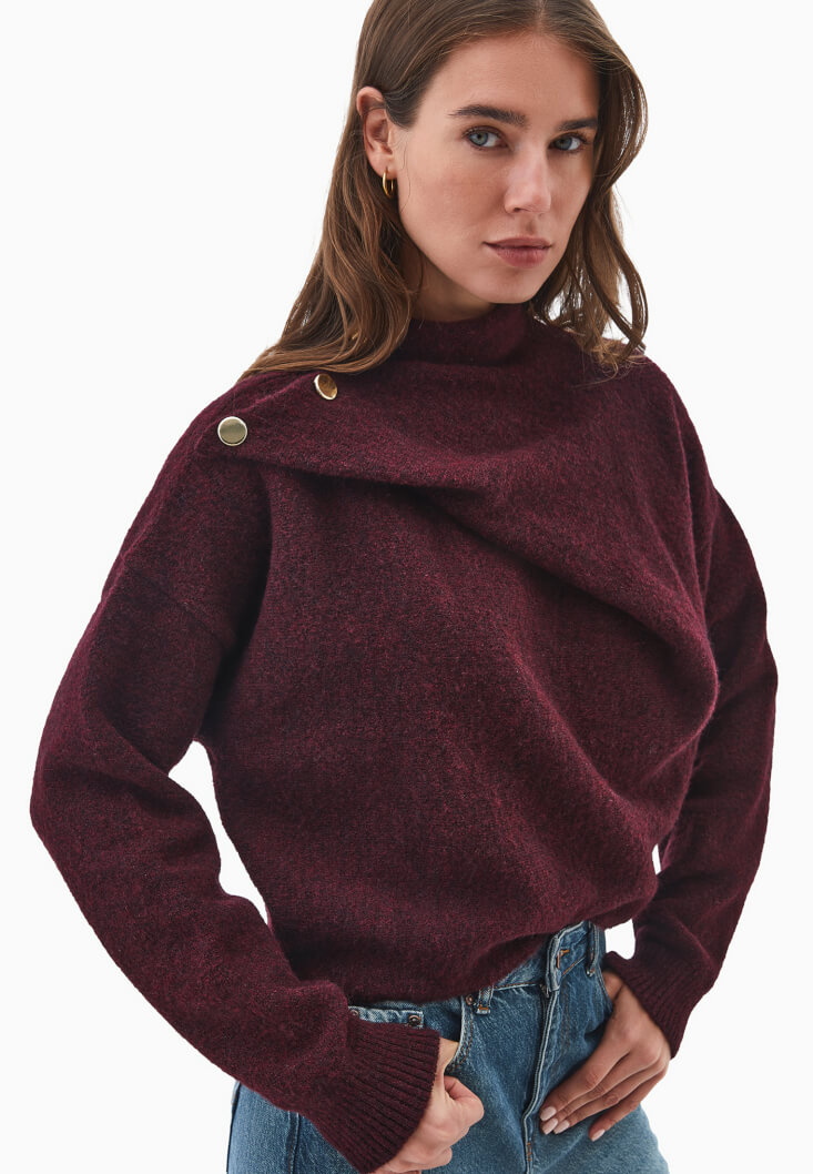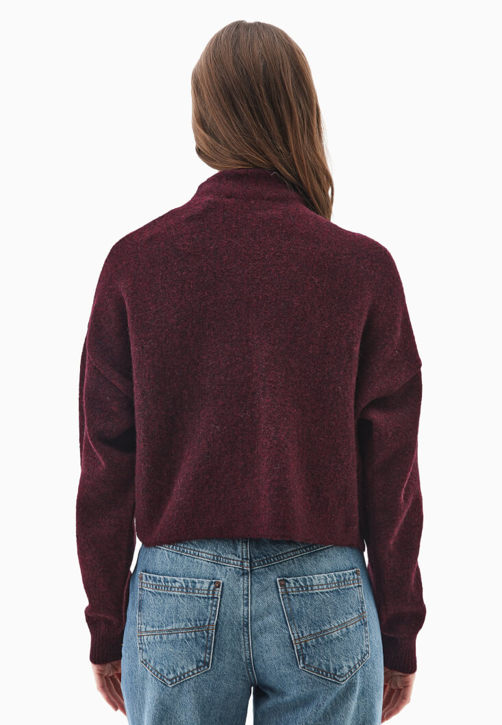 Bordo Yün Karışımlı Kazak