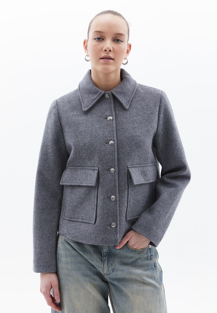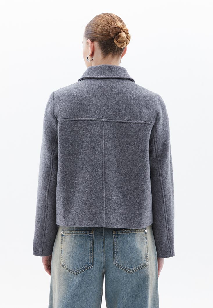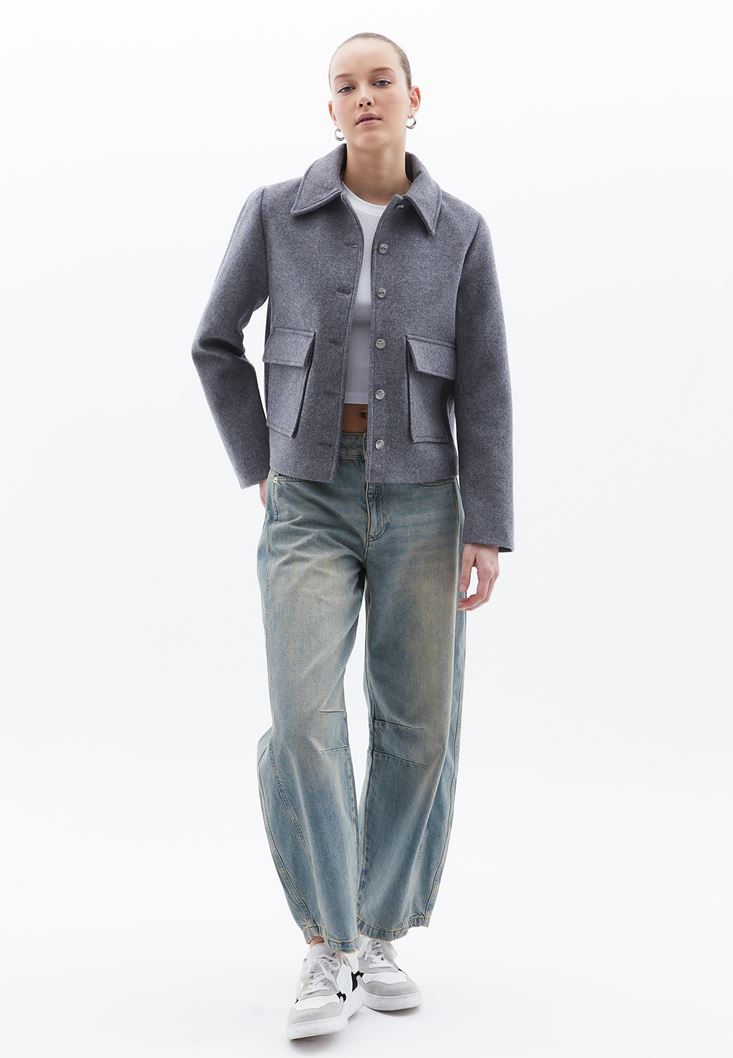• Bayan Mavi Yün Karışımlı Kısa Mont