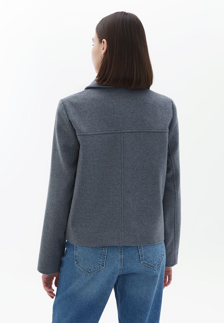 • Bayan Mavi Yün Karışımlı Kısa Mont
