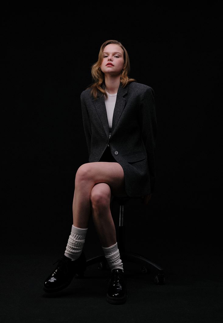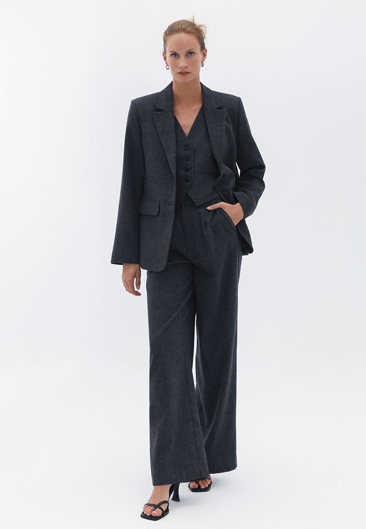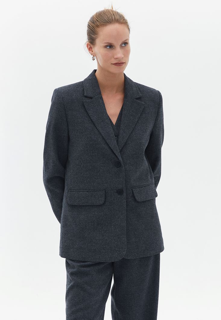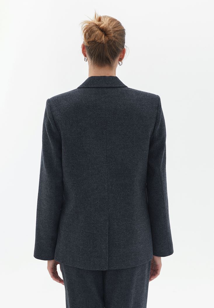 Yün ve viskon karışımlı doku, bedenden uzak oversize fit, iki cepli, içi astarlı, düğme kapamalı.