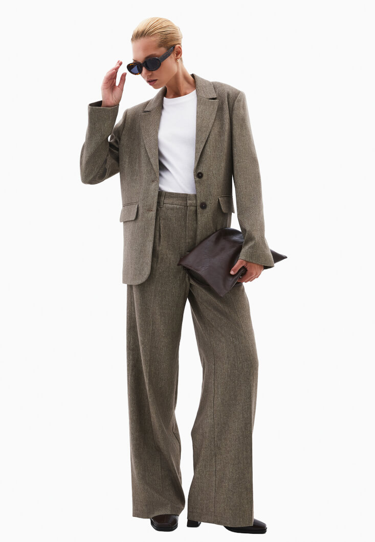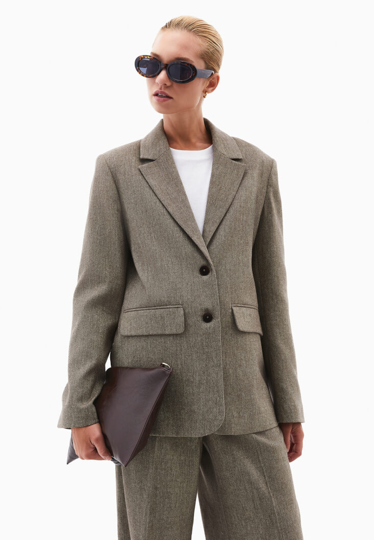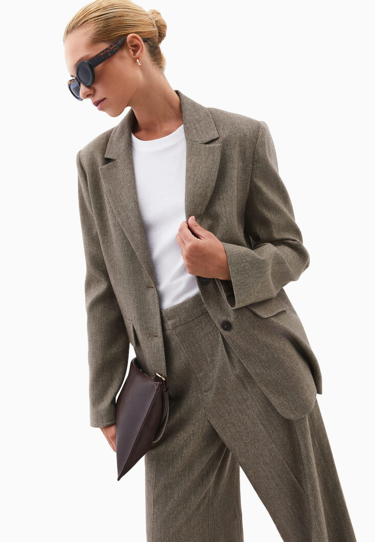 • Bayan Kahverengi Yün Karışımlı Oversize Ceket