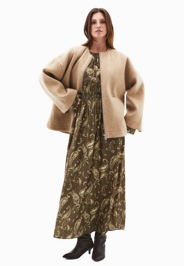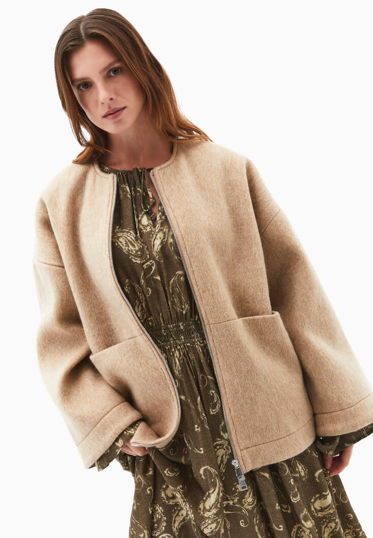 • Bayan Bej Yün Karışımlı Oversize Ceket