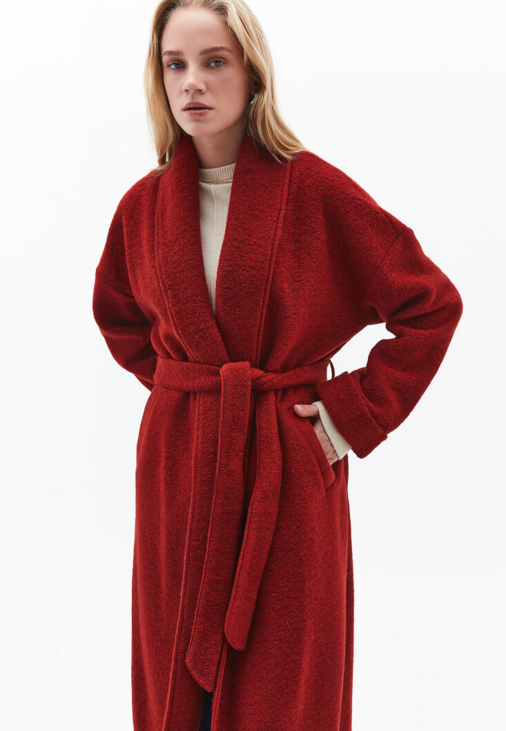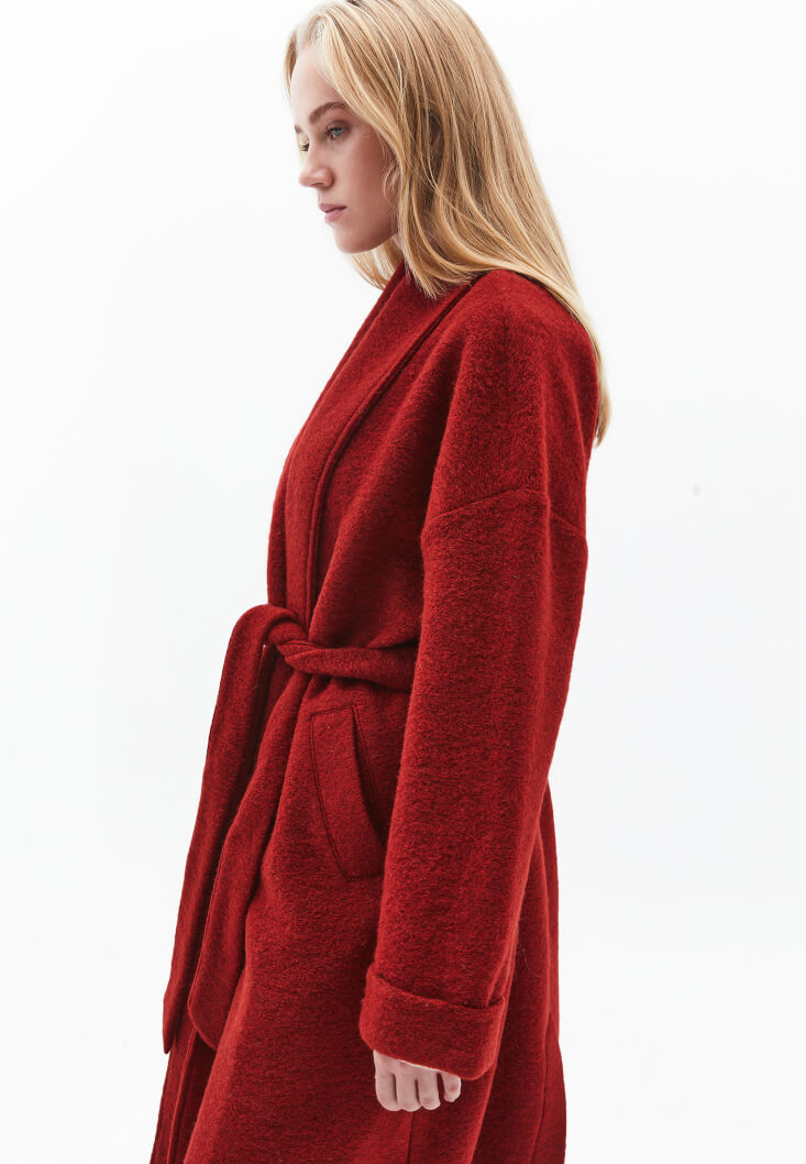 • Bayan Bordo Yün Karışımlı Oversize Kaban