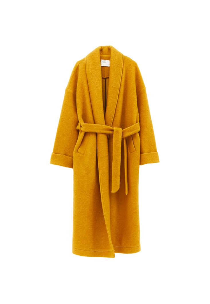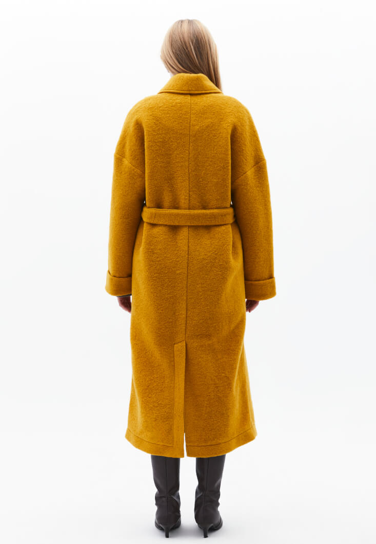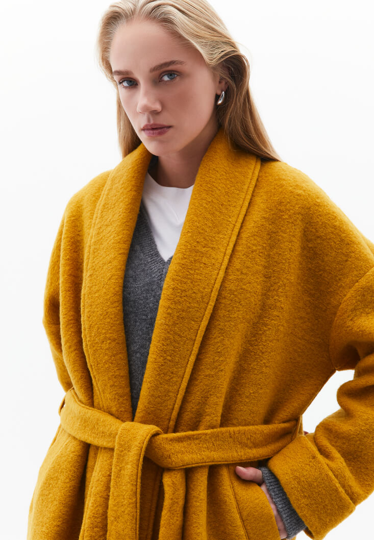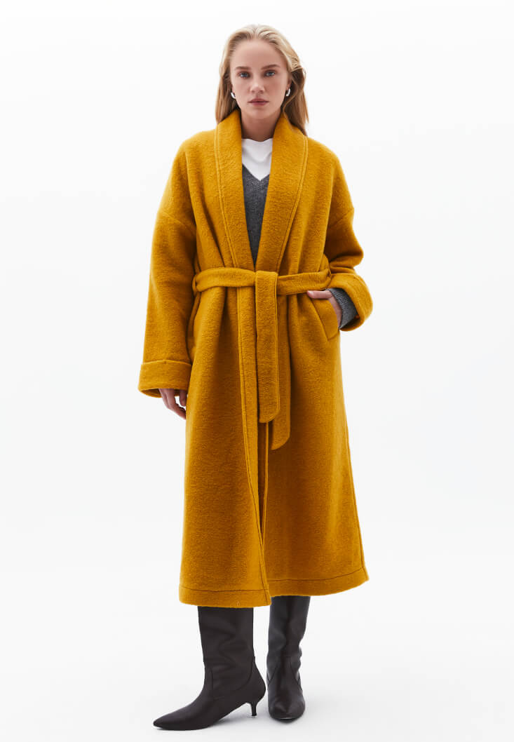 • Bayan Sarı Yün Karışımlı Oversize Kaban