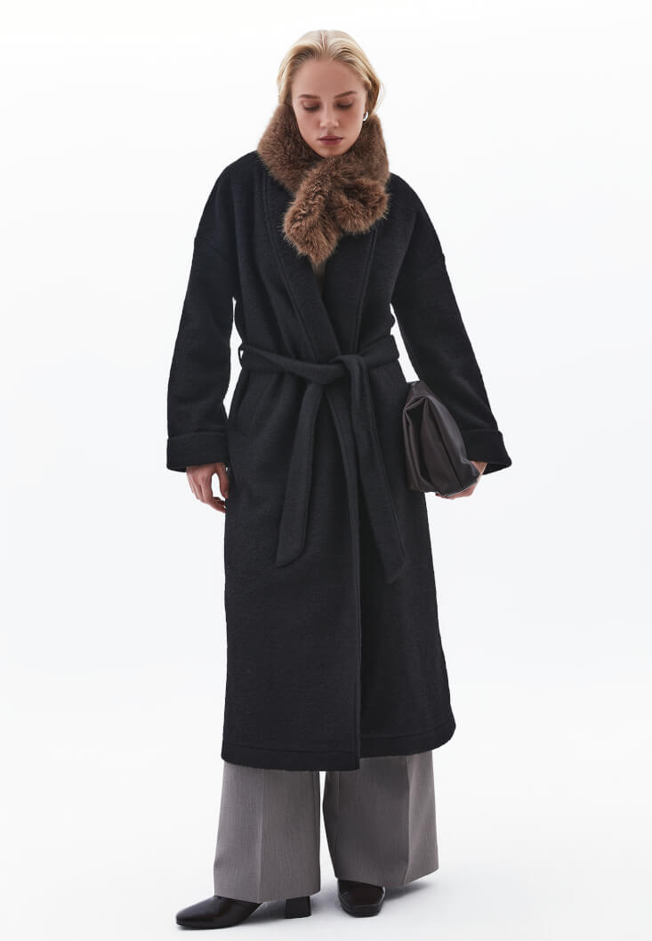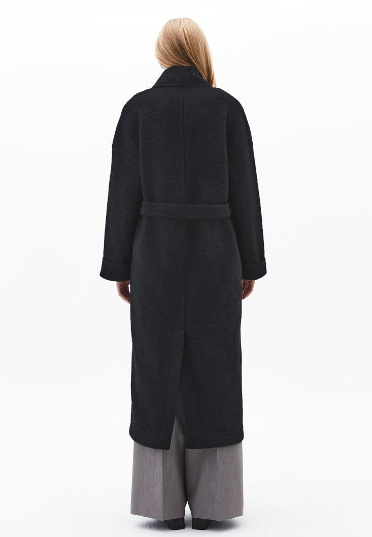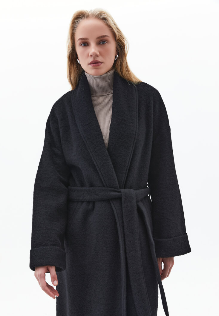 • Bayan Siyah Yün Karışımlı Oversize Kaban