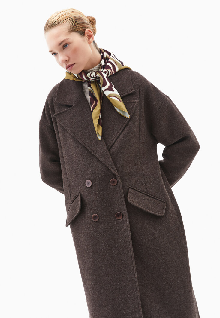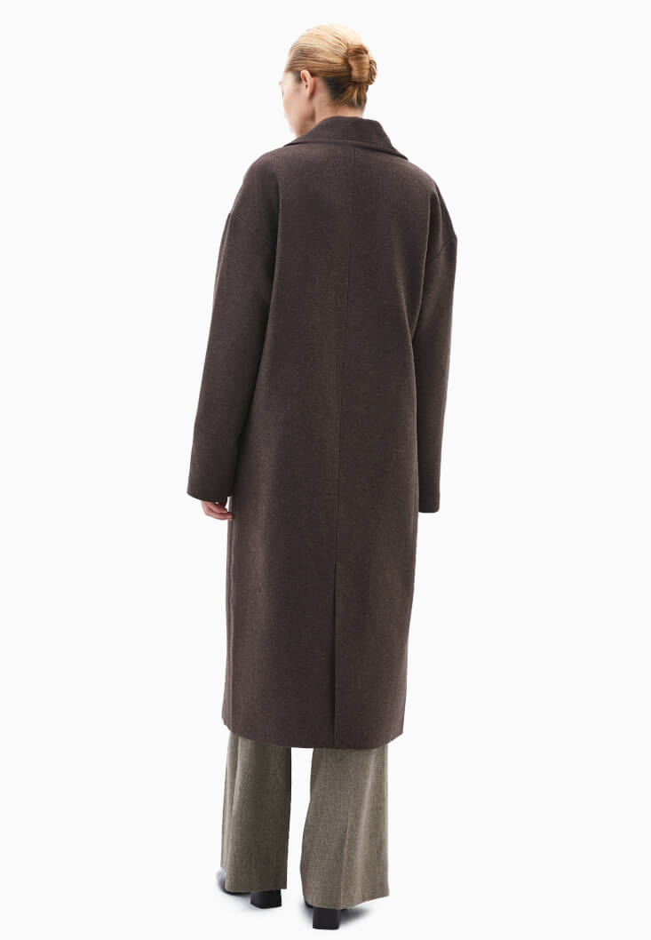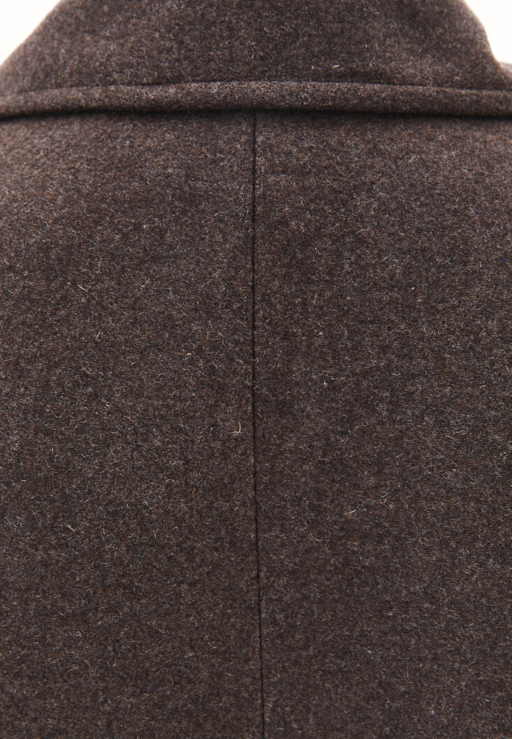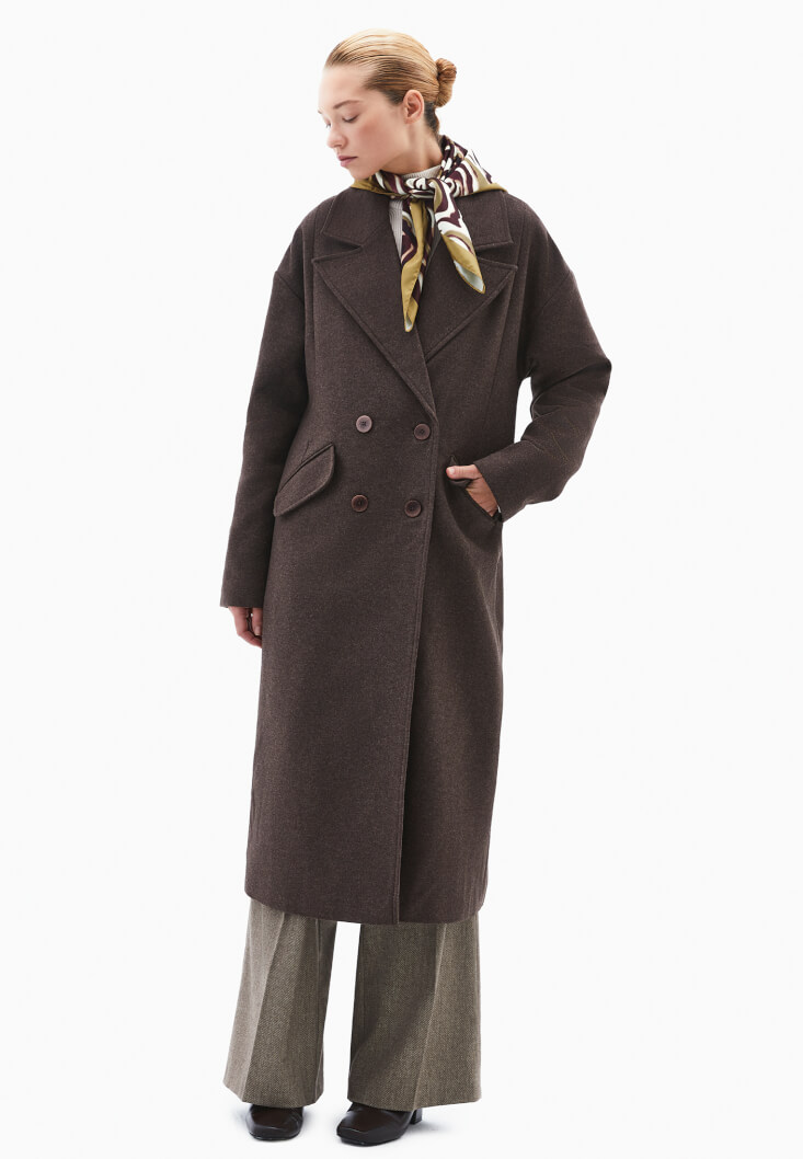 Kahverengi Yün Karışımlı Oversize Kaban