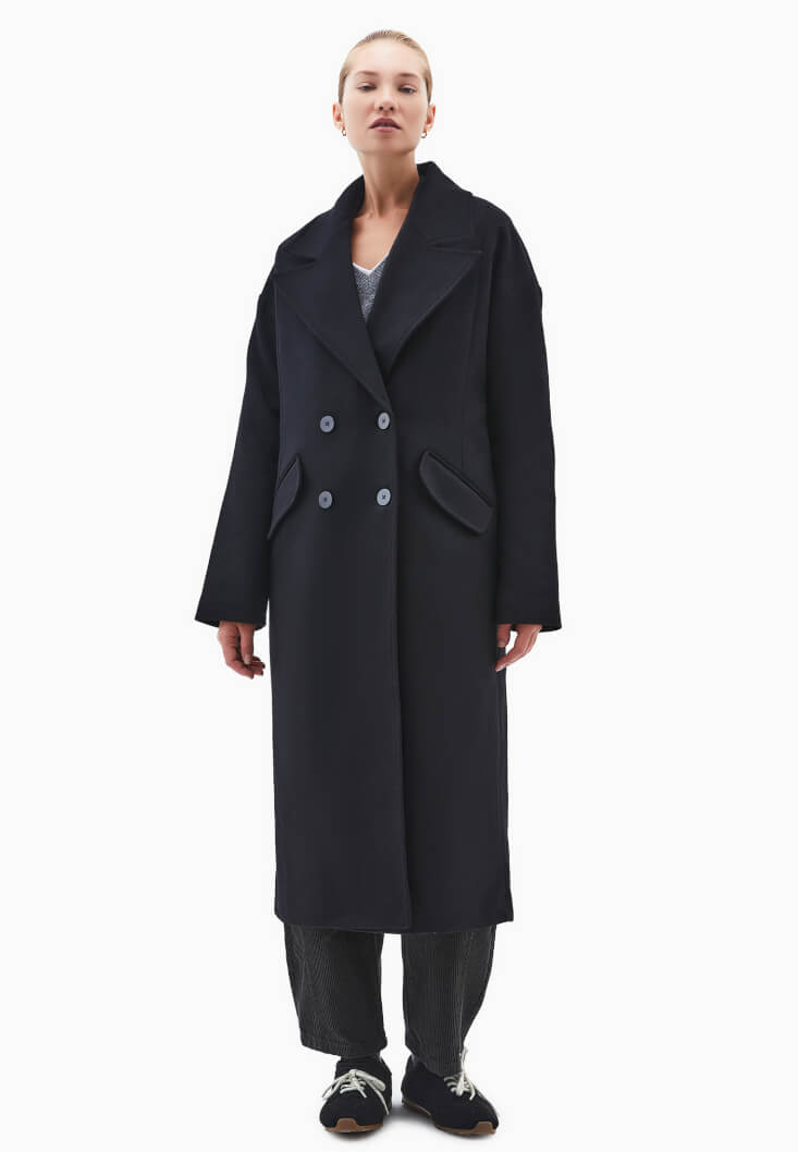 • Bayan Siyah Yün Karışımlı Oversize Kaban