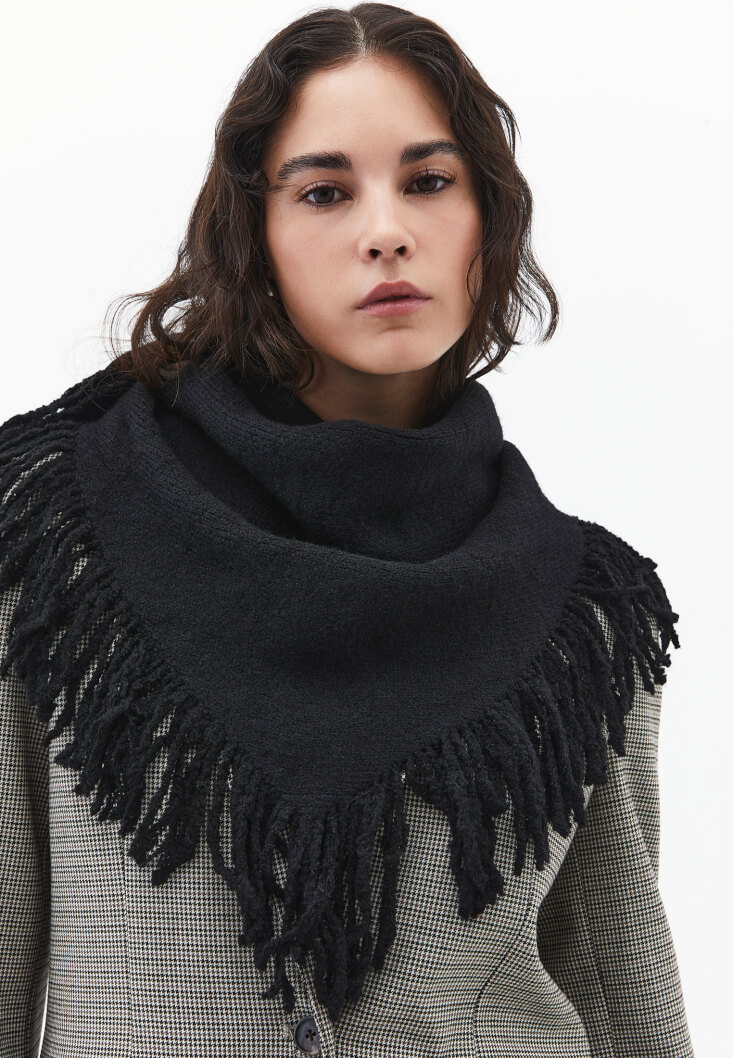• Bayan Siyah Yün Karışımlı Püsküllü Şal
