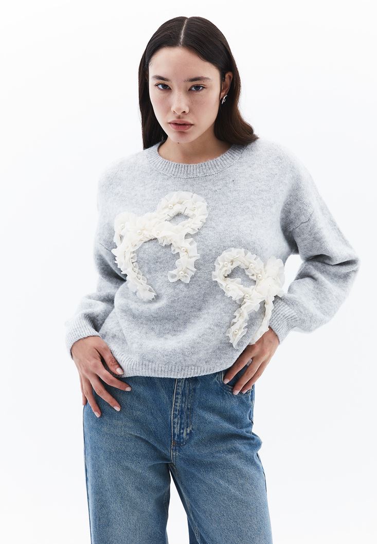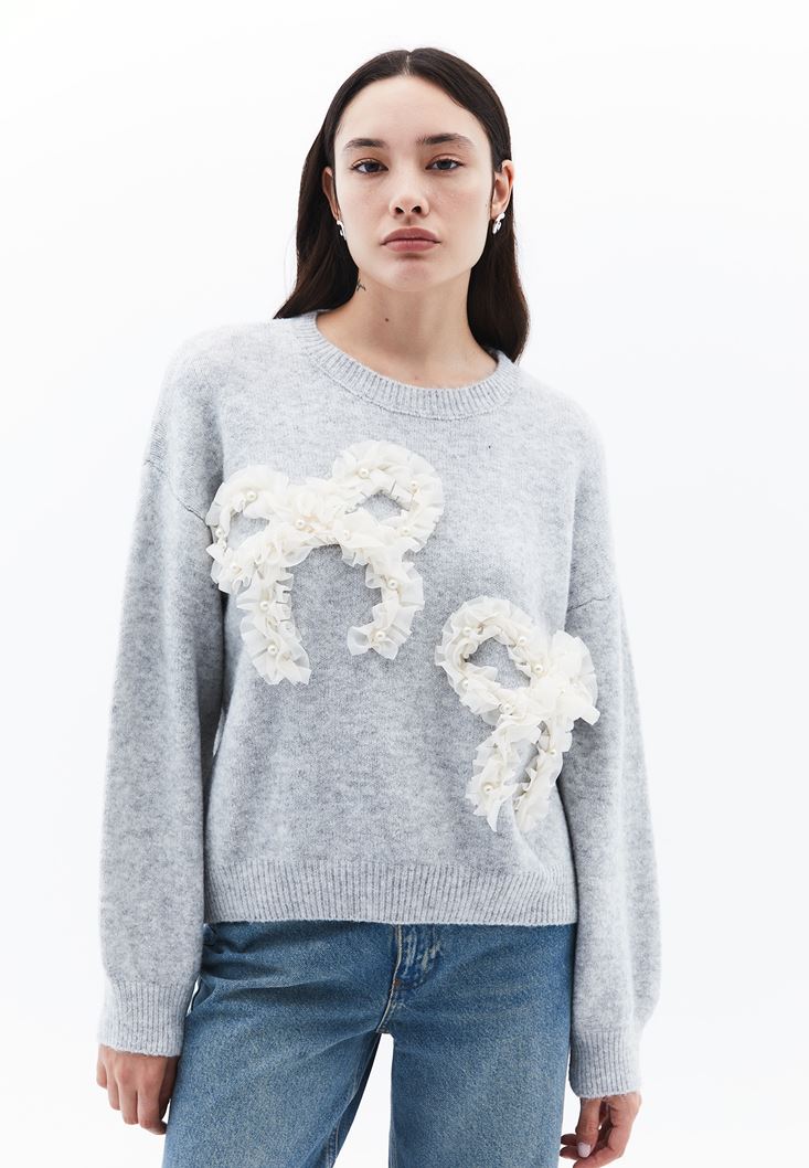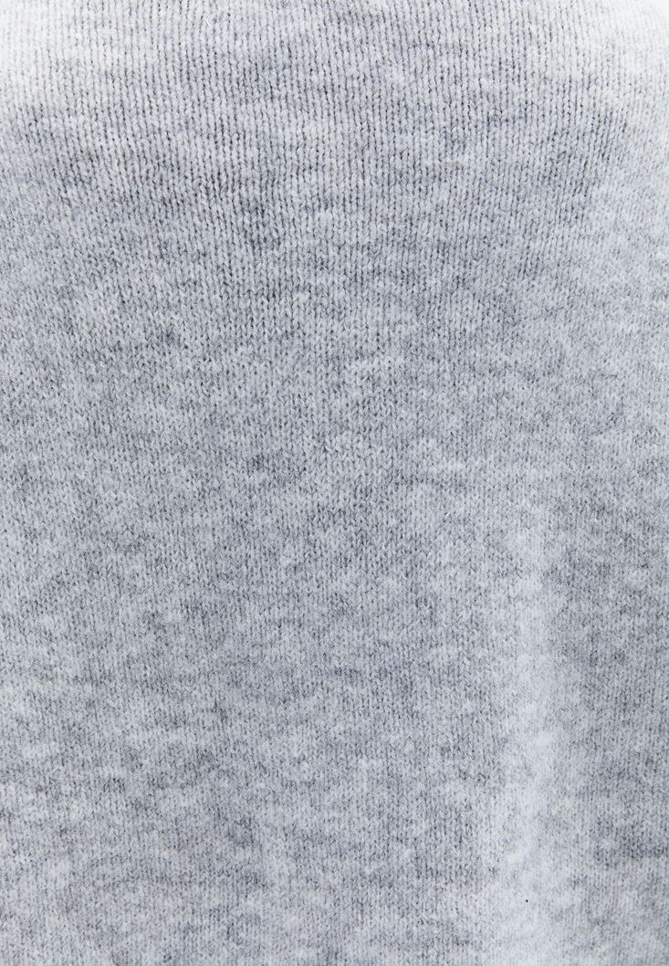 • Bayan Gri Yün Karışımlı Sıfır Yaka Kazak