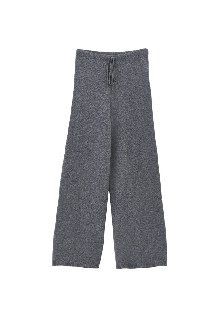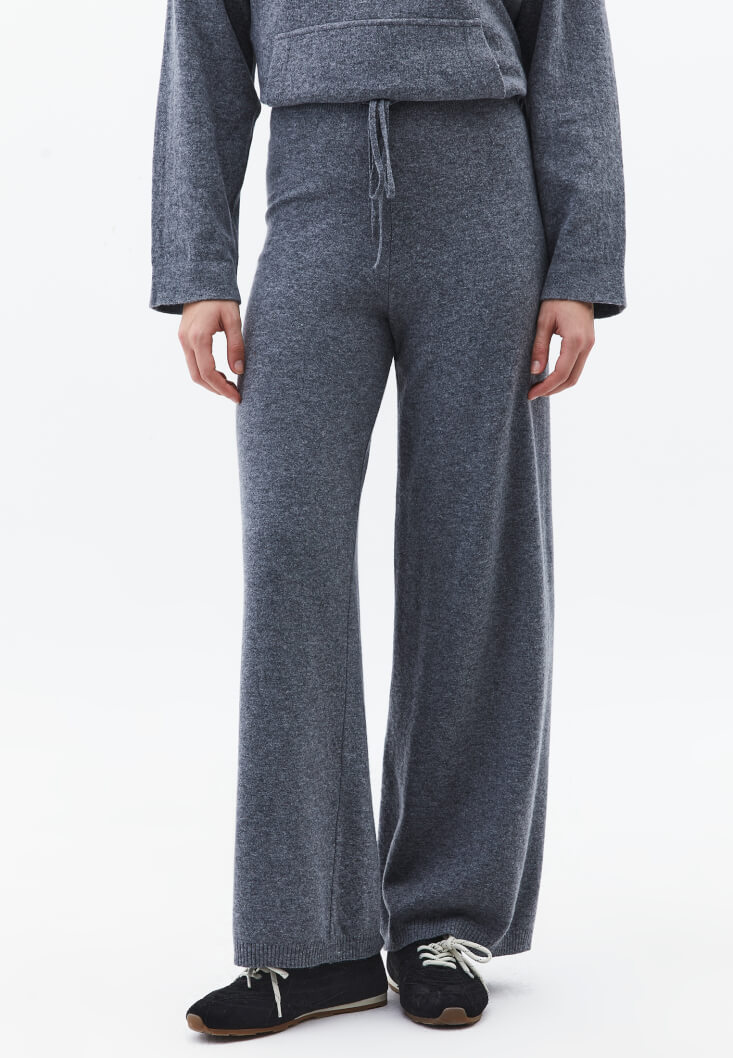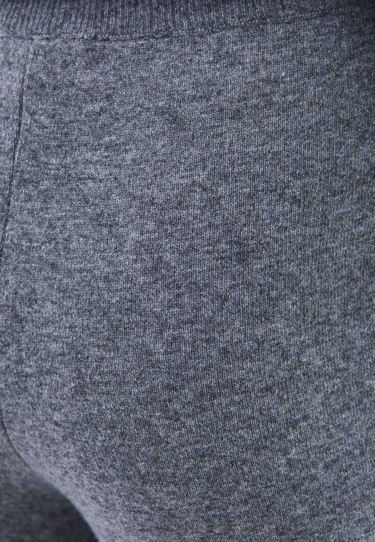 Yün ve viskon karışımlı triko, bedene yakın rahat fit, orta bel, straight paça, beli lastikli ve bağcıklı.