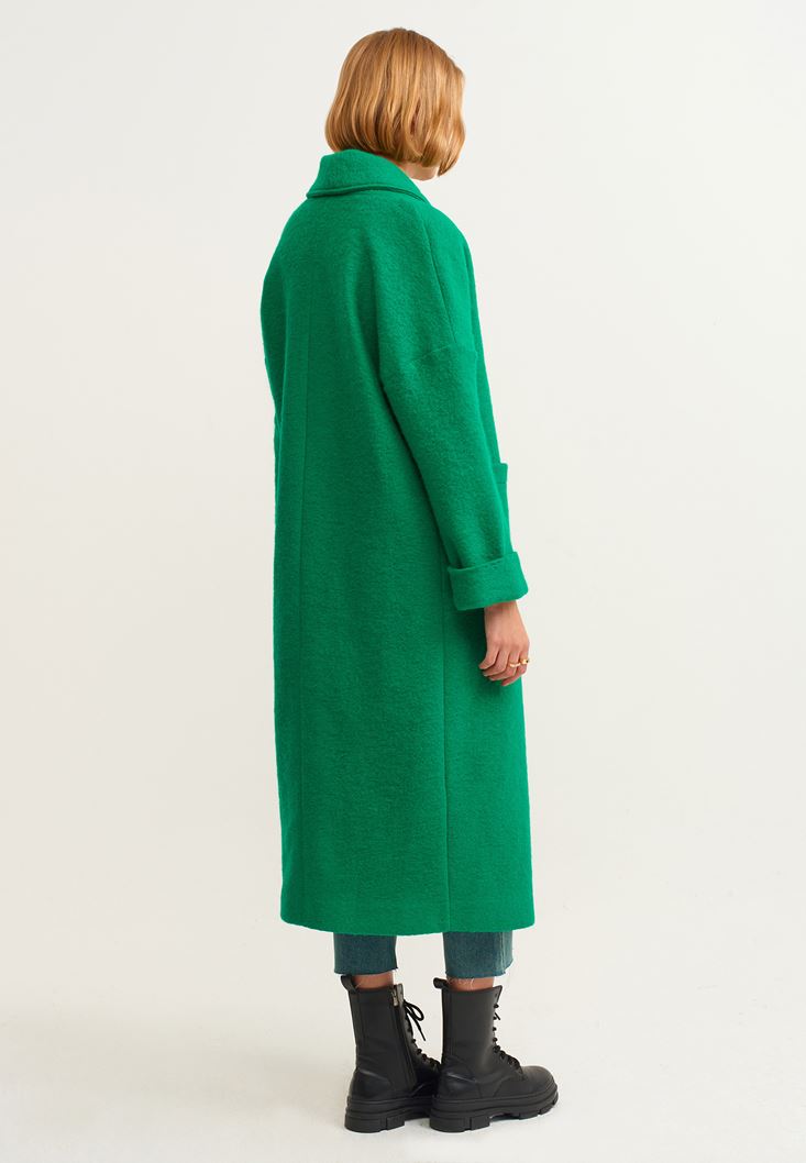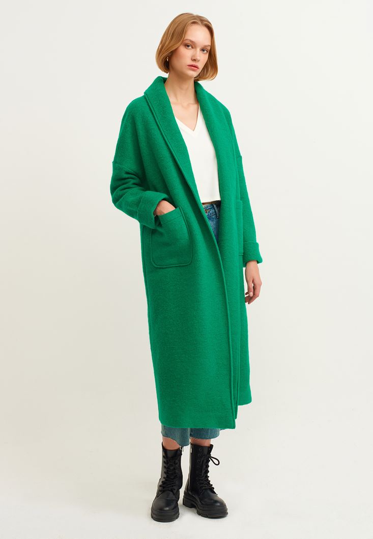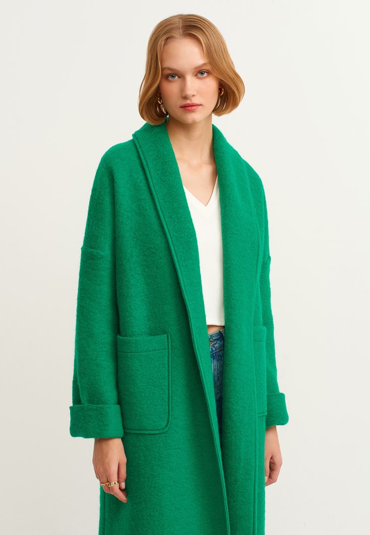 • Bayan Yeşil Yün Karışımlı Uzun Cepli Kaban