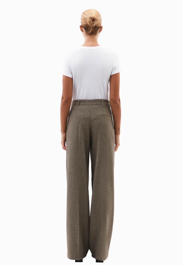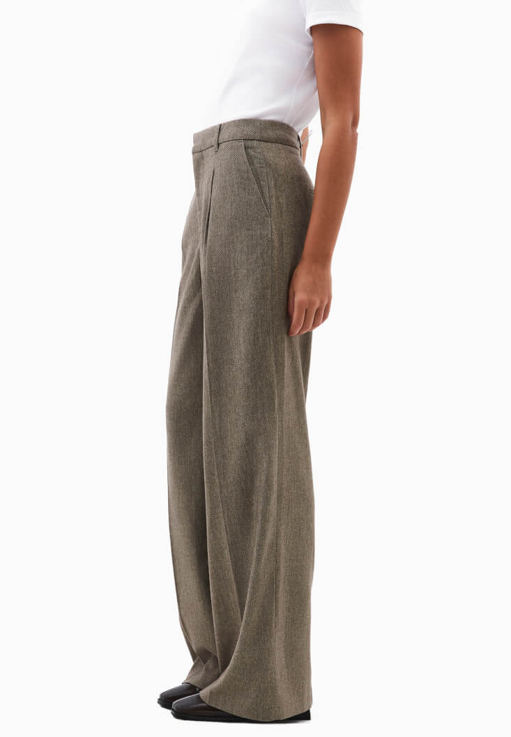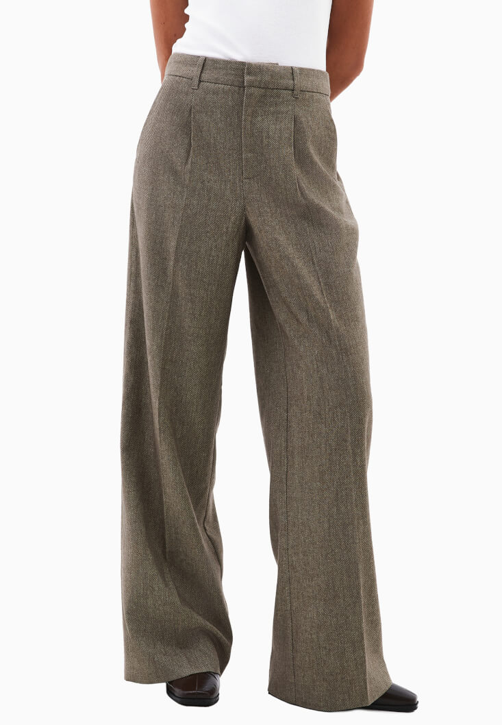 Kahverengi Yün Karışımlı Wide-Leg Pantolon