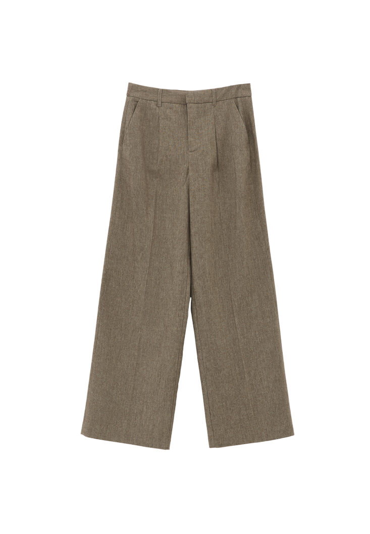 • Bayan Kahverengi Yün Karışımlı Wide-Leg Pantolon