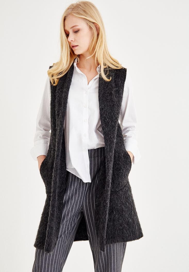 Yün Yelek sahip oldugu tasarimi, konforlu dokusu ve sik durusu ile her zaman keyif alarak kullanacaginiz parçalardan birisi olacak. Salas bir kesime sahip olan yelek modelinin yün dokusu her zaman sicak tutmasi ve ayni zamanda hava transferi saglamasi nedeniyle oldukça konforlu bir siklik sunuyor. Yandan cepli tasarimi ve dökümlü durusu ile pek çok farkli tarza sahip kombinde tercih edebileceginiz yelek modeli ile sikliginizi ön plana çikaracaksiniz. OXXO'nun özgür kadinlardan aldigi ilhami basarili bir sekilde yansitan yelek modelleri arasinda yer alan tasarima kombinlerinizde yer vererek kendinize özgün ve özel bir siklik yaratabilirsiniz. Dokusu ve sadeligi ile öne çikan bu tasarimi kullandiginiz her kombini farkli bir seviyeye çikarmanin keyfini yasayabilirsiniz.