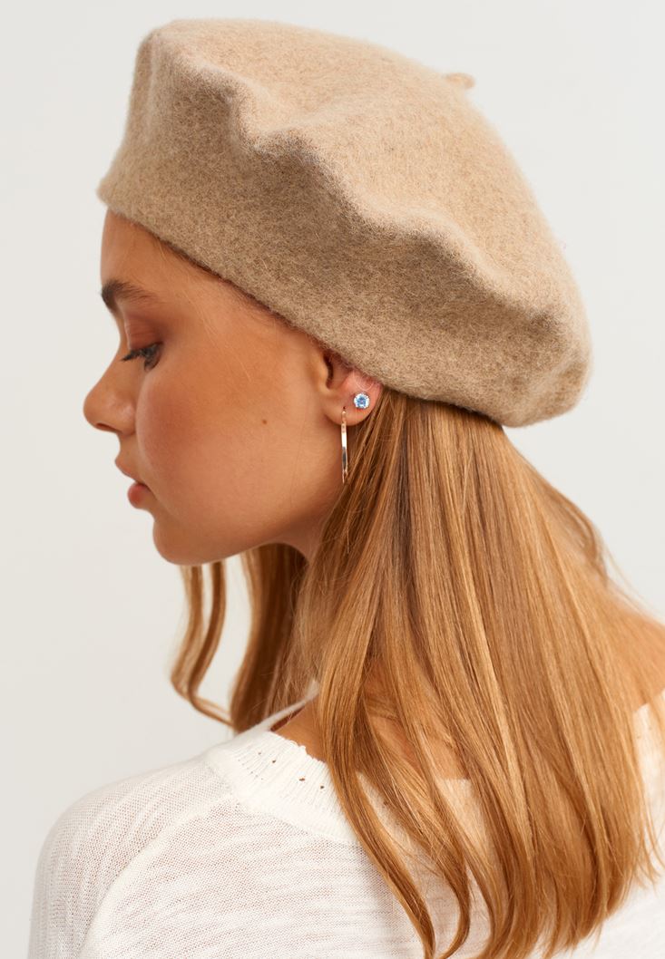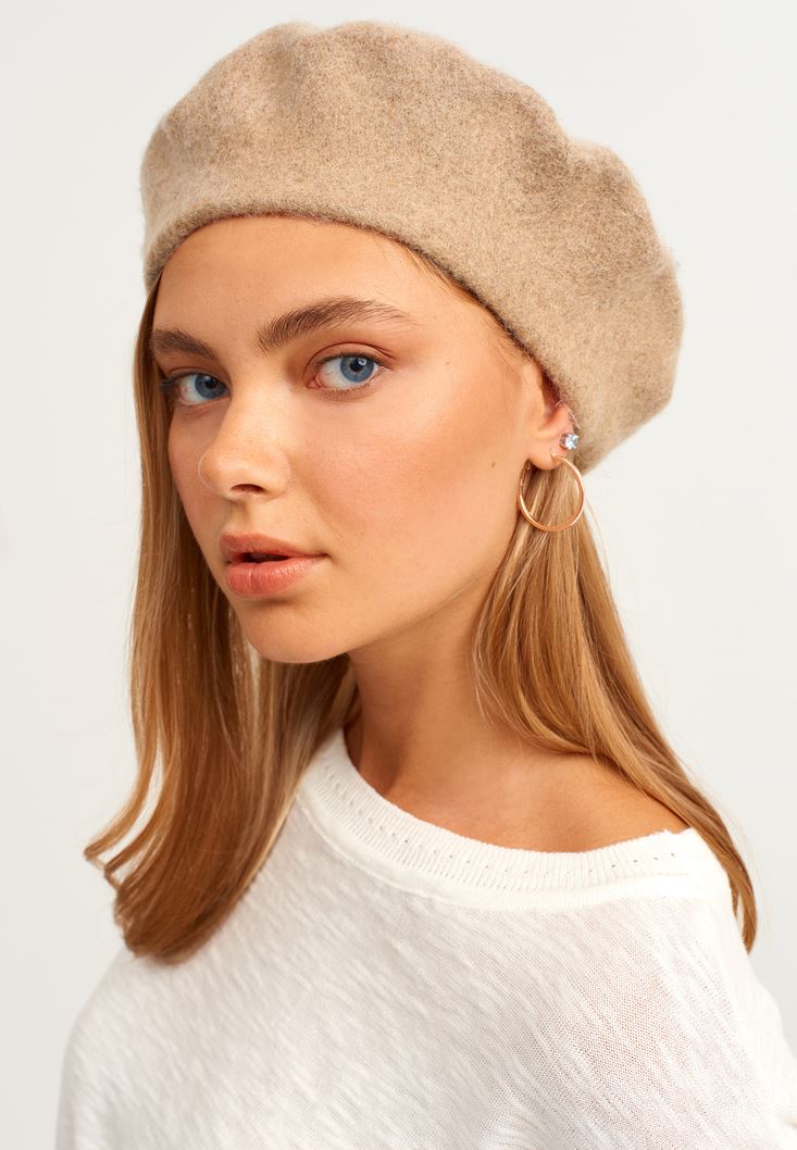 • Bayan Bej Yünlü Slouchy Fransız Bere