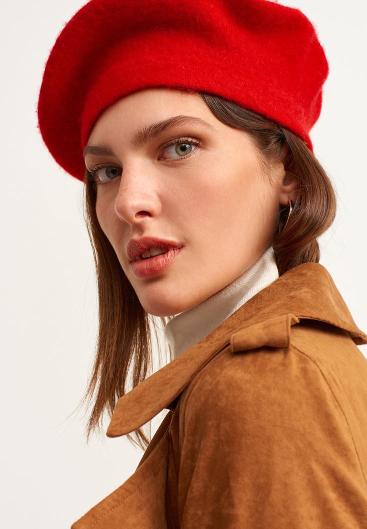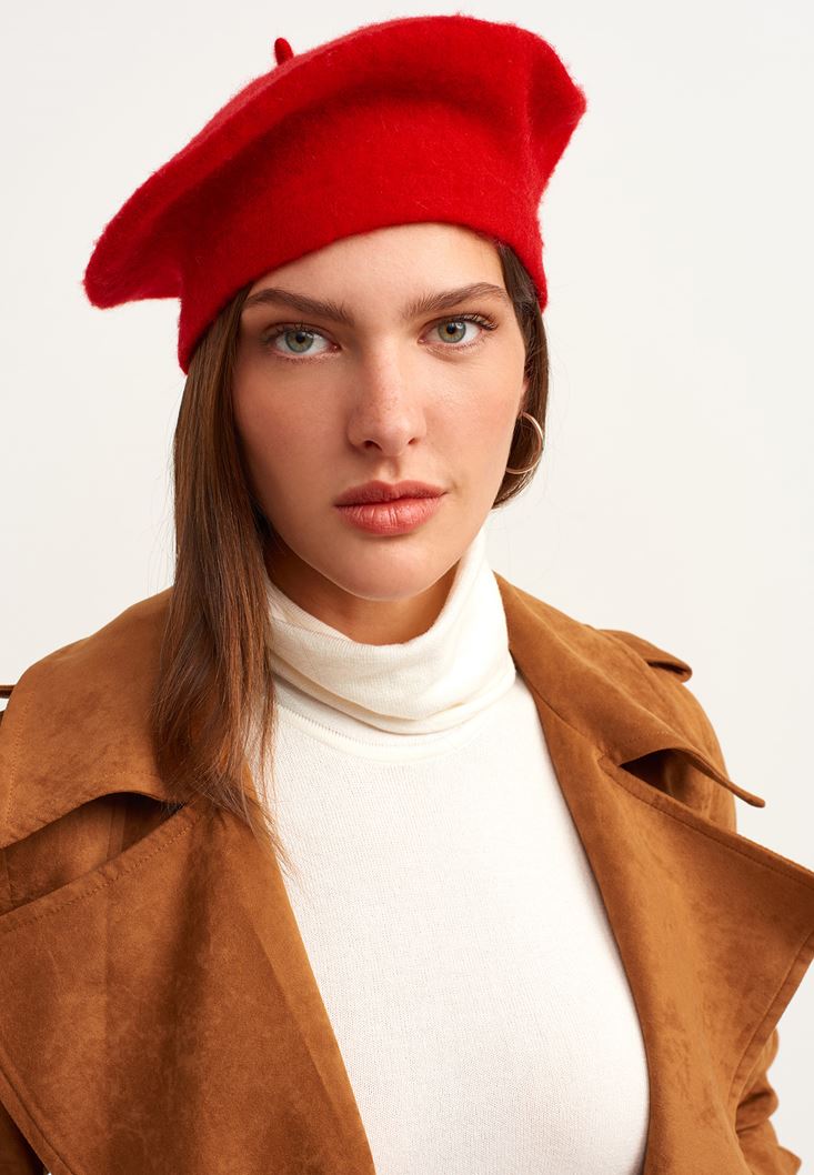 • Bayan Kırmızı Yünlü Slouchy Fransız Bere
