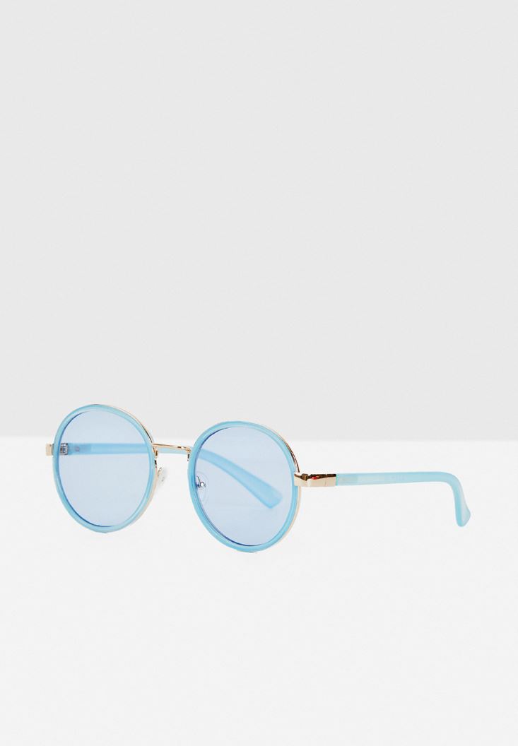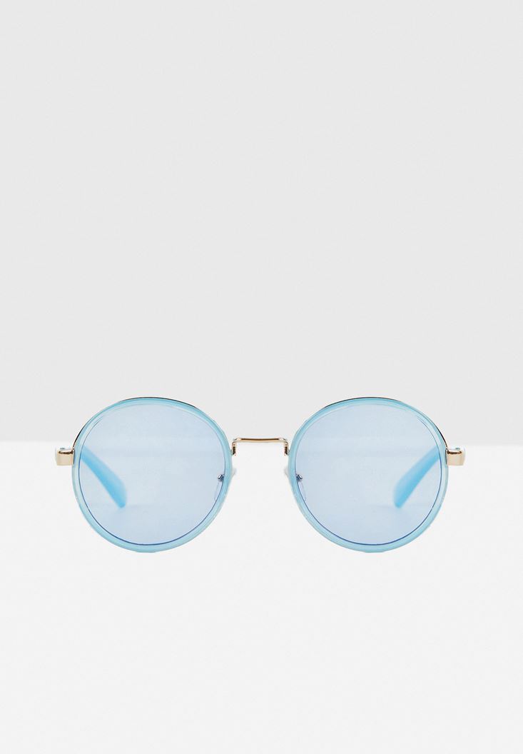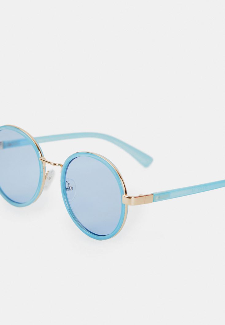 Mavi Yuvarlak Çerçeveli Gold Detaylı Gözlük