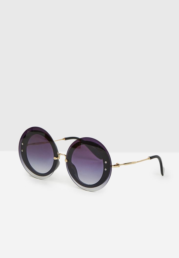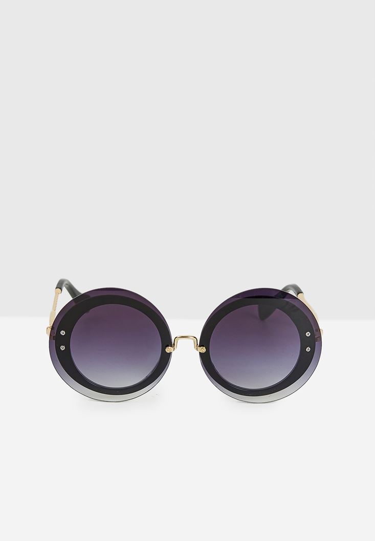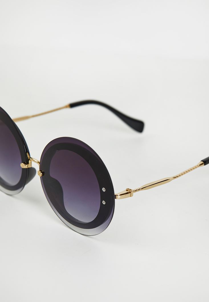 Siyah Yuvarlak Gold Detaylı Gözlük