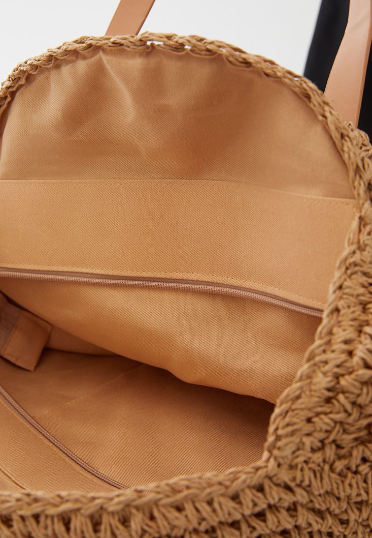 • Bayan Bej Yuvarlak Hasır Çanta