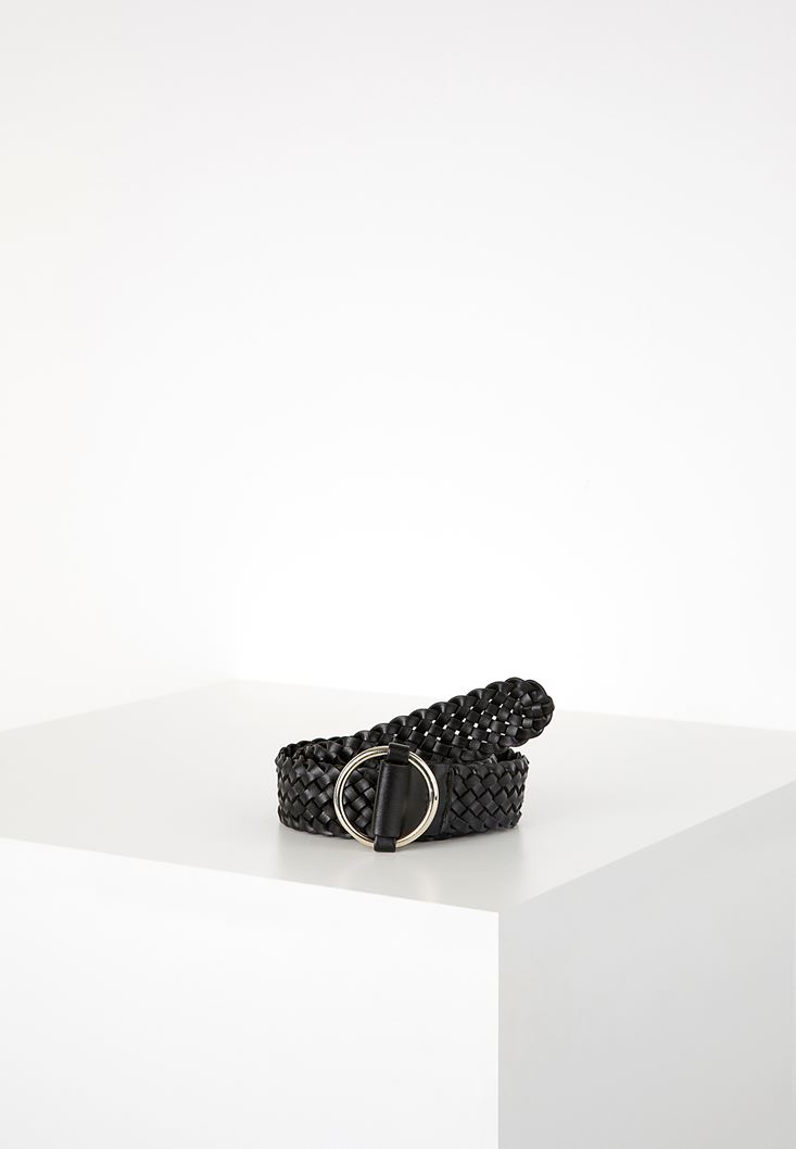 Siyah Yuvarlak Tokalı Örgü Kemer