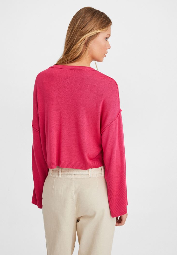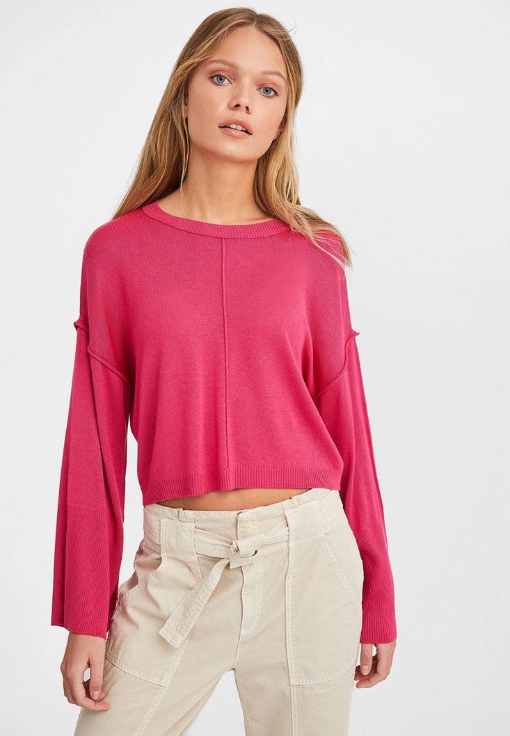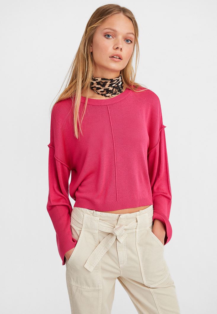 • Bayan Pembe Yuvarlak Yaka Crop Triko