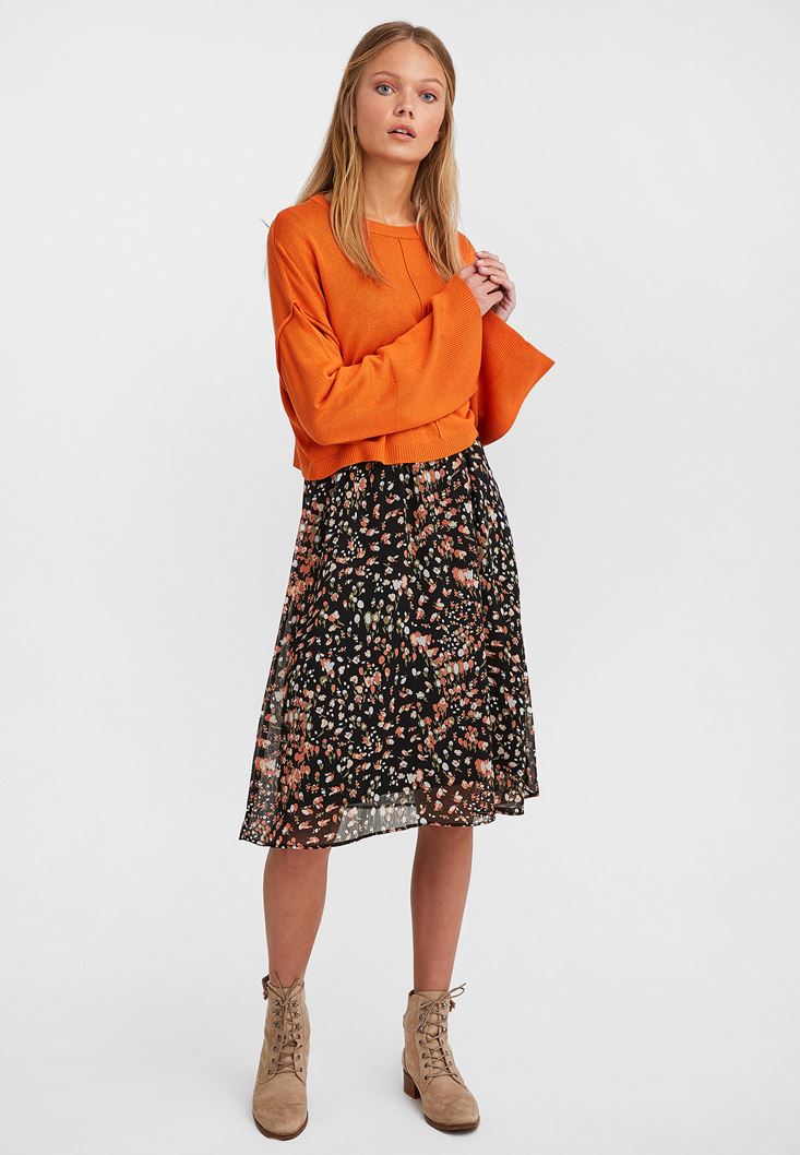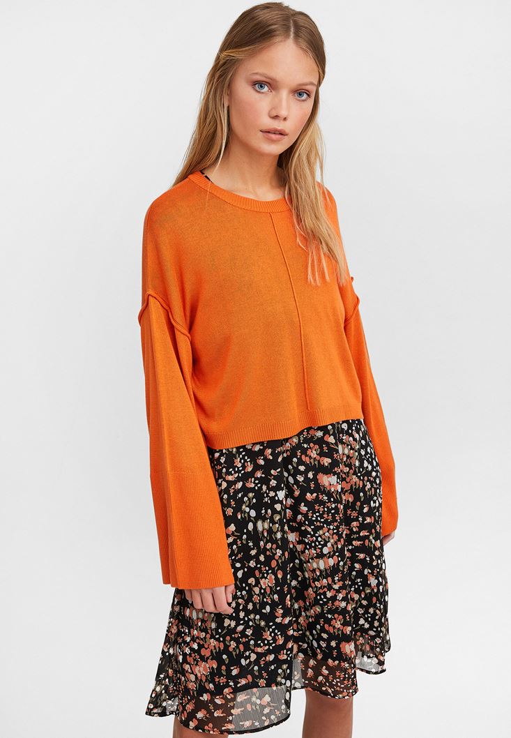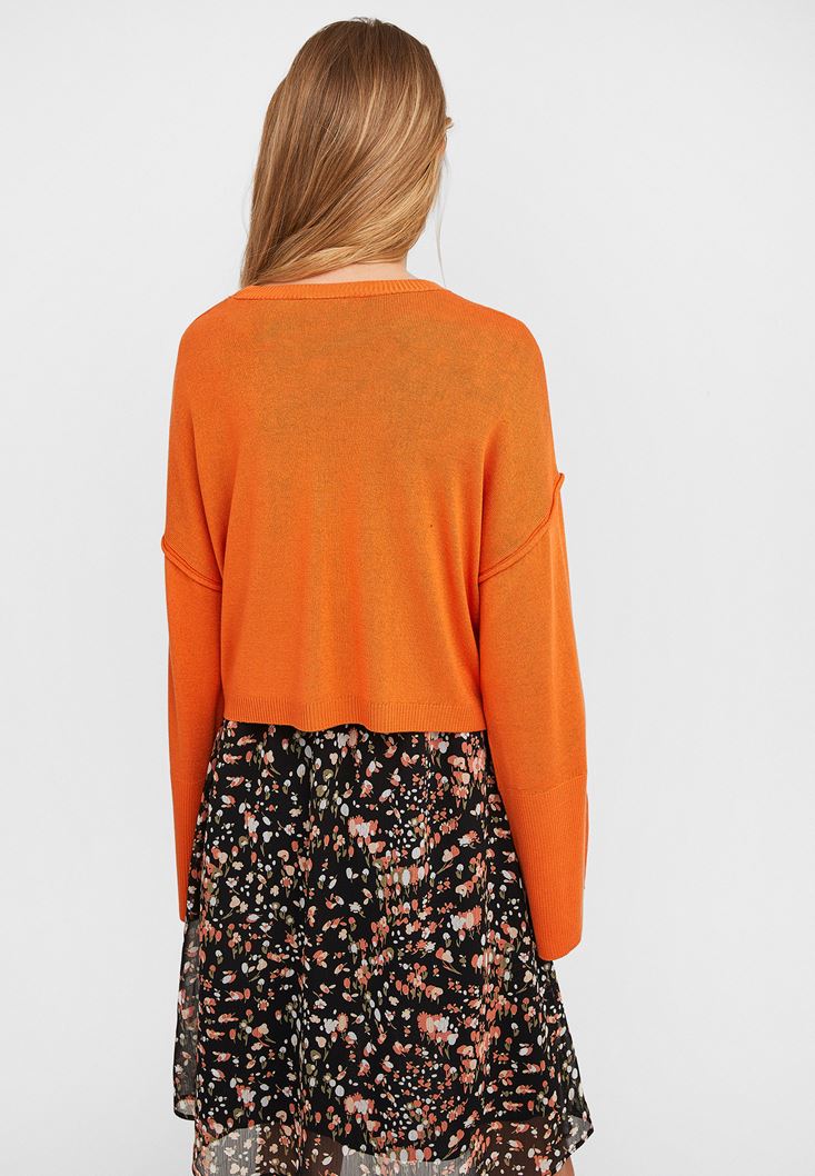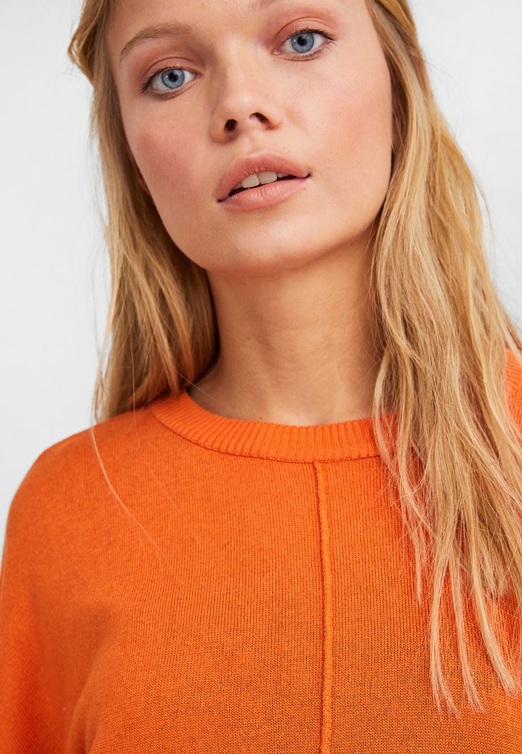 Turuncu Yuvarlak Yaka Crop Triko