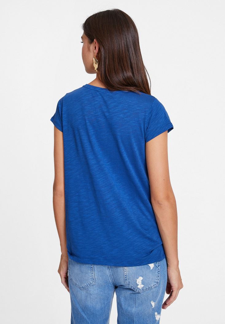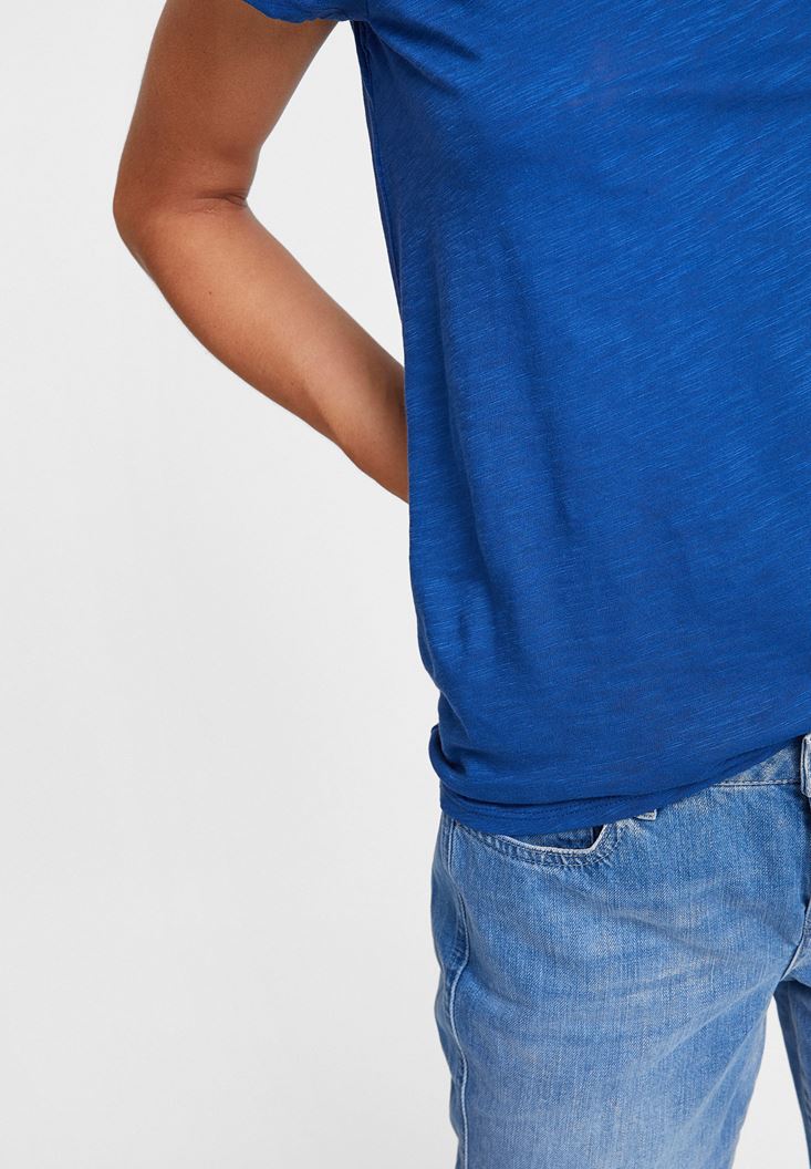 Lacivert Yuvarlak Yaka Yarım Kollu Basic Tişört