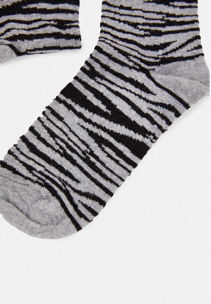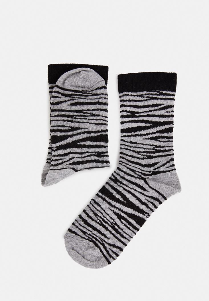 Zebra Desen Çorap modeli yeni sezonun dikkat çeken trendlerinden birisi olan animal print trendine kombinlerinde aksesuar kullanarak yer vermek isteyenler için hoş bir seçenek. Tasarımın bilek kısmında kullanılan farklı renkli lastik detayı hem kullanım rahatlığı sunuyor hem de deseni ön plana çıkarıyor. Sahip olduğu pamuk doku sayesinde oldukça başarılı bir kullanım konforu sunan çorap modeli, bu dokunun nefes alan yapısı ve yüksek nem emiciliği ile uzun süreli kullanımlarda rahat hissetmenize yardımcı oluyor. Tasarımın topuk ve burun kısımlarında tercih edilen düz renkler ise parçanın açık ayakkabılarla birlikte kullanımında daha az hareketli bir görünüm için ideal bir seçenek sunuyor. OXXO’nun enerjisini yansıtan çorap modelleri arasında yer alan tasarım ile yeni sezon trendlerini kombinlerinize yansıtacaksınız.
