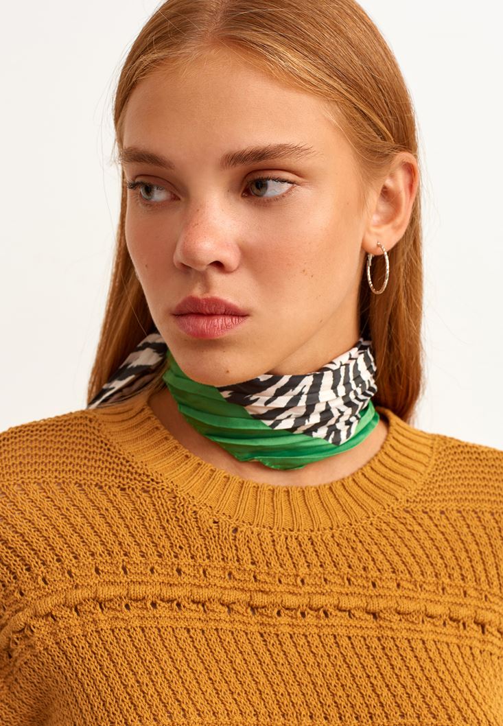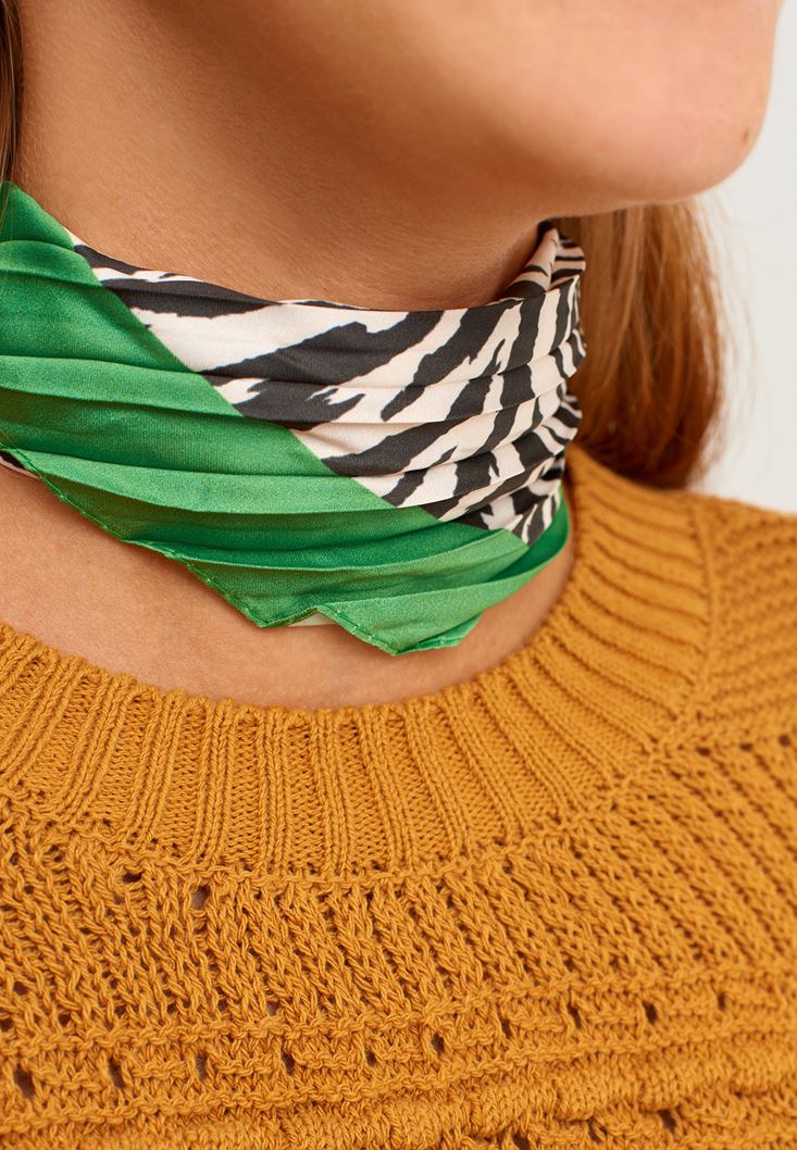 Doğadan ilham alan deseniyle karşına çıkan mini fular modelini favori aksesuarların arasına ekleme zamanı geldi! Kombinlerini renklendirmek ve canlandırmak için tercih edebileceğin bu pileli dokulu ve zebra desenli mini fular ile harikalar yaratabilirsin... O sana hem davetlerde hem de günlük hayatında eşlik edebilir. :)