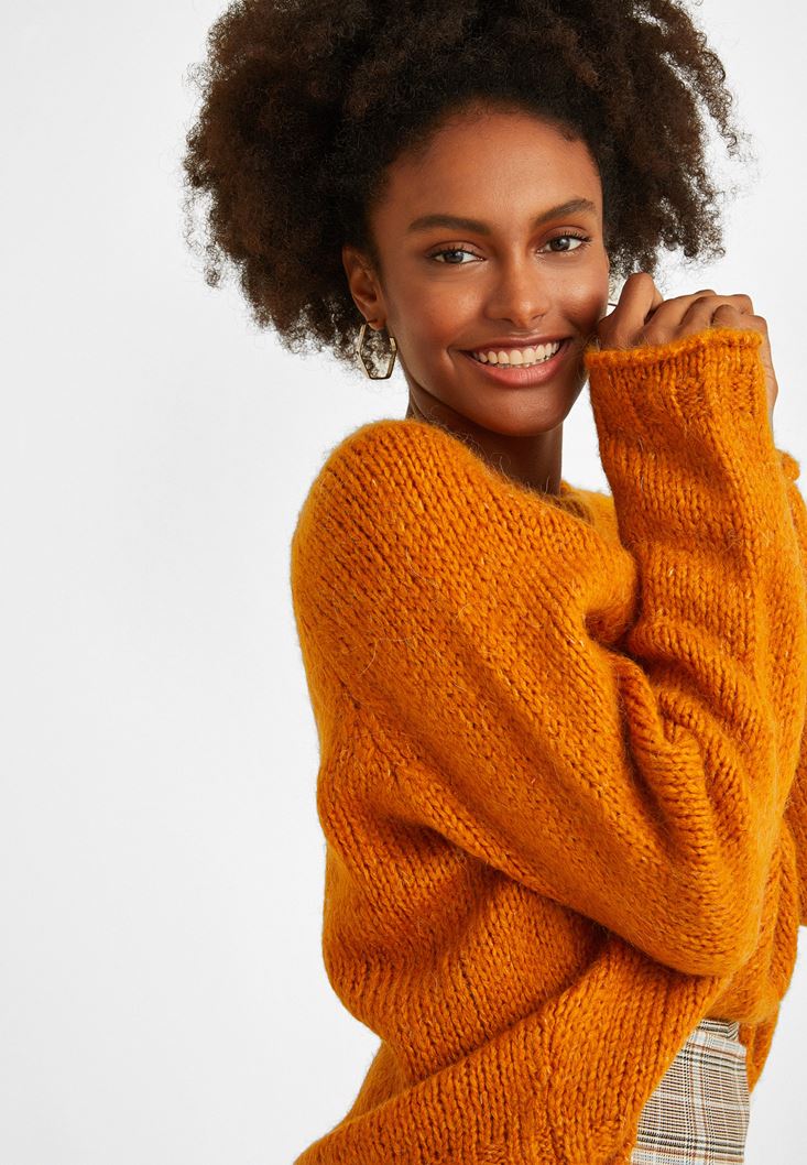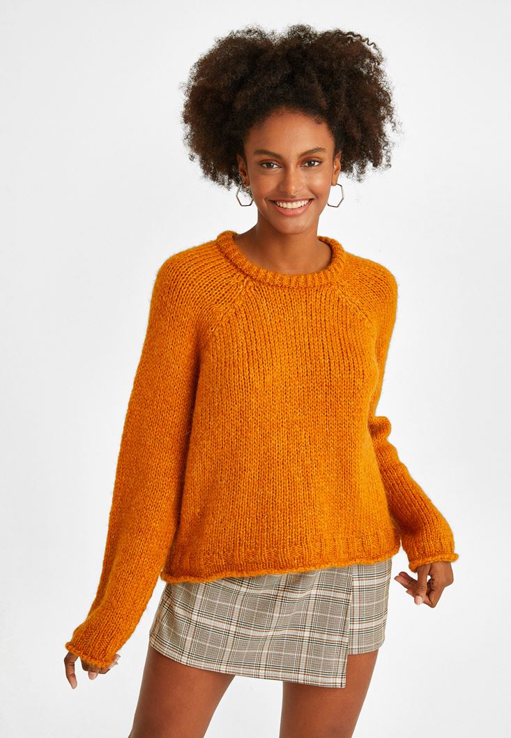 • Bayan Turuncu Zero-Neck Crop Triko