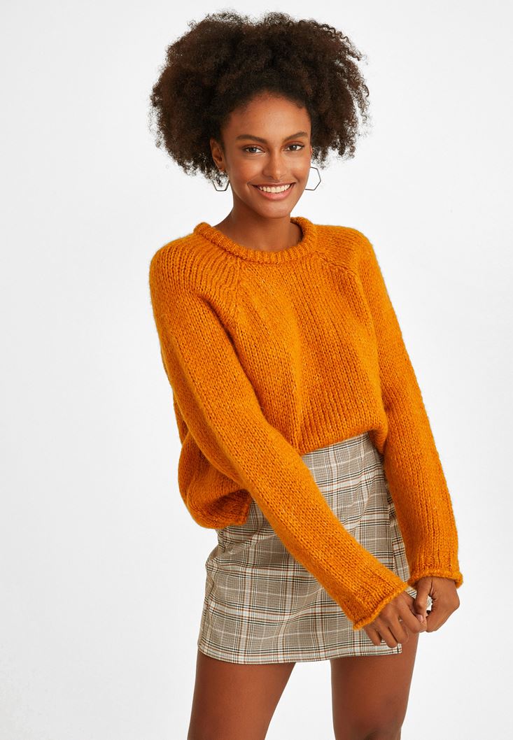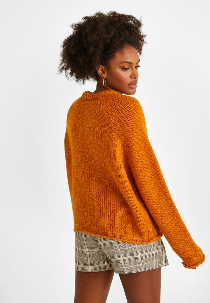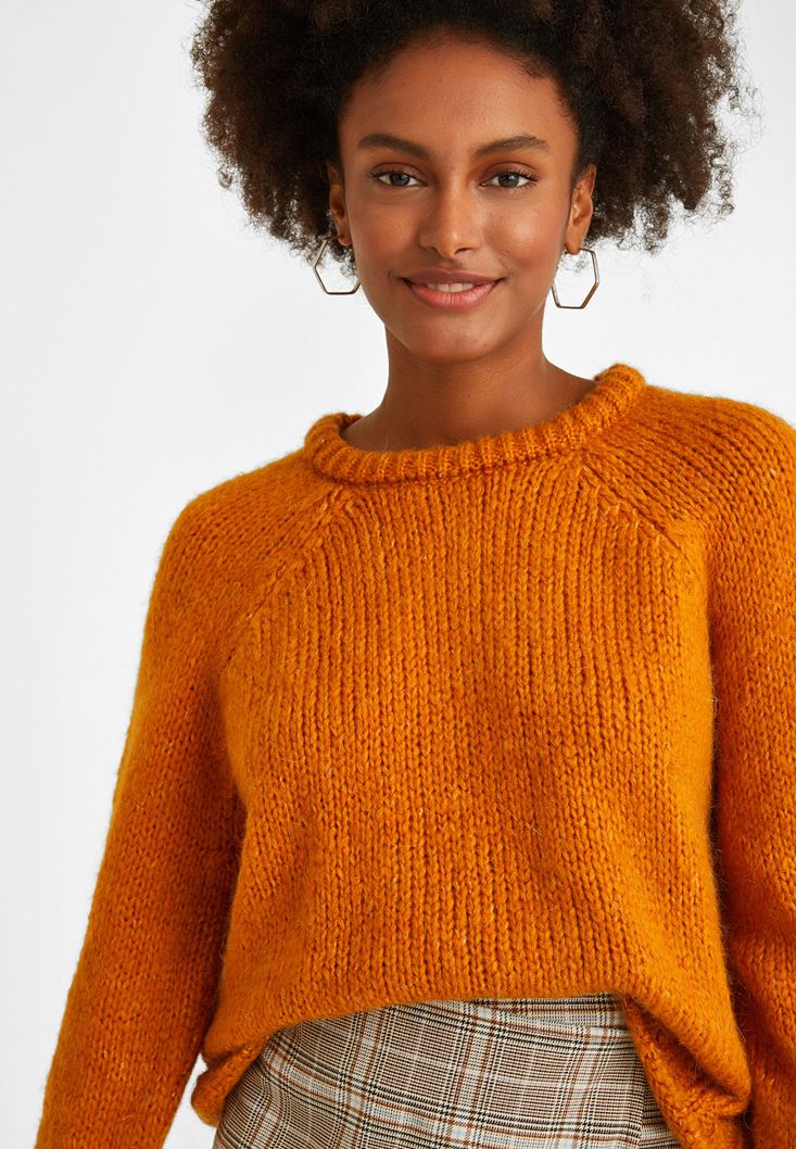 Turuncu Zero-Neck Crop Triko