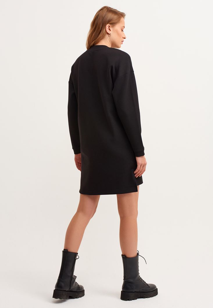• Bayan Siyah Zero-Neck Mini Sweat Elbise