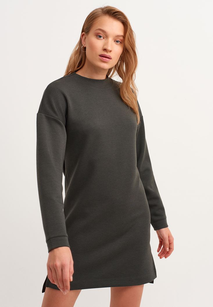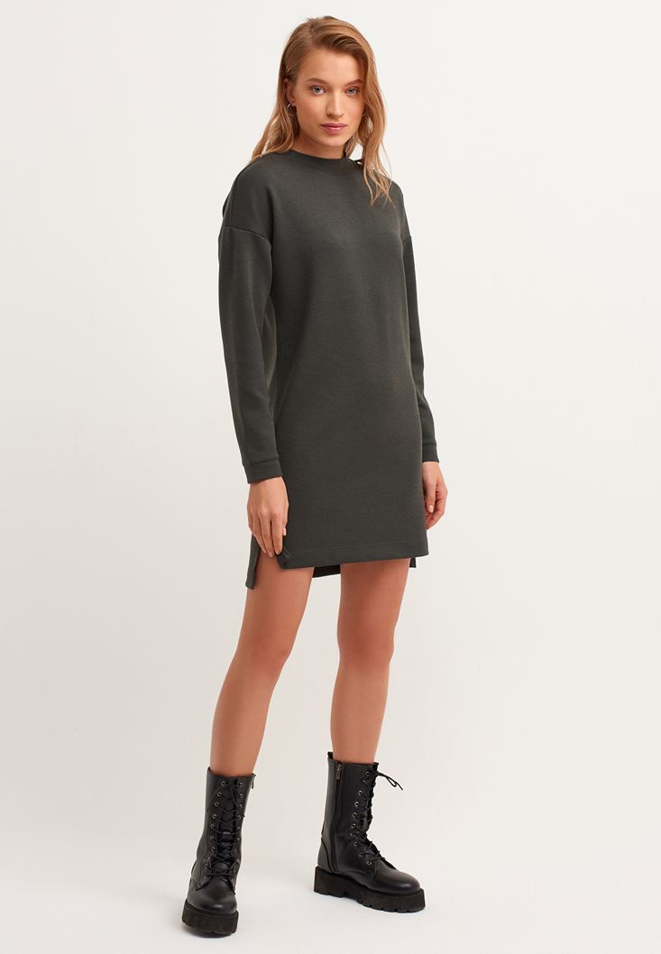 Sweatshirt rahatlığı şimdi de elbise formuyla büyülemeye devam ediyor! Sıfır yaka duruşu ve yumuşacık dokusu ile karşına çıkan sweat elbise her zaman kurtarıcın olabilir... Bu parça ile birleştirebileceğin yüksek tabanlı sneakerlar ve sırt çantaları seni yükselişe geçirecek! Aynı zamanda sweat elbise modelini su geçirmez yağmurluklarla da birleştirerek mevsime uygun kombinler oluşturman mümkün... Bu konfor senin! :)