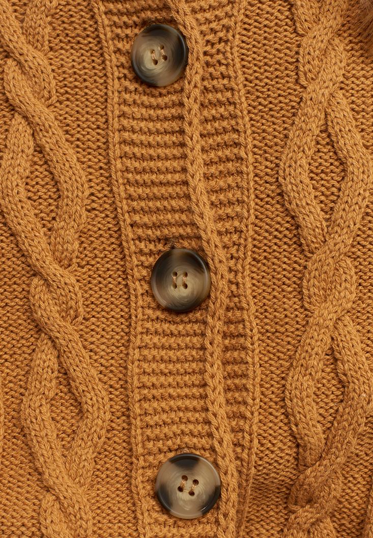 • Bayan Kahverengi Zero-Neck Örgü Hırka