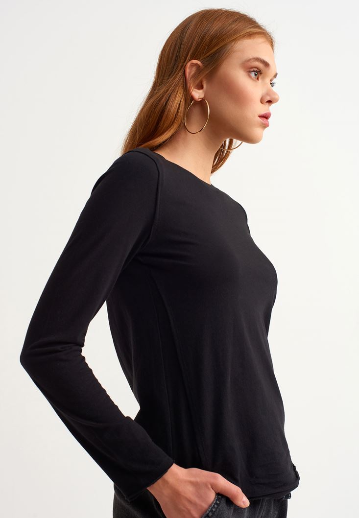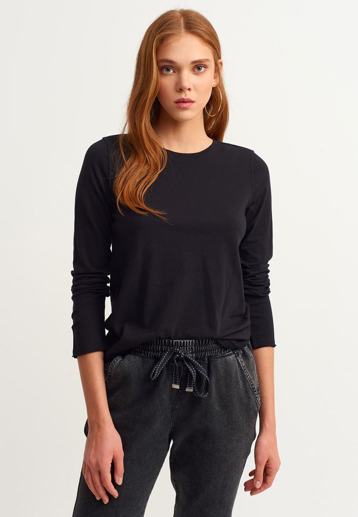 • Bayan Siyah Zero-Neck Pamuklu Tişört