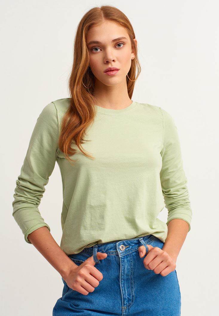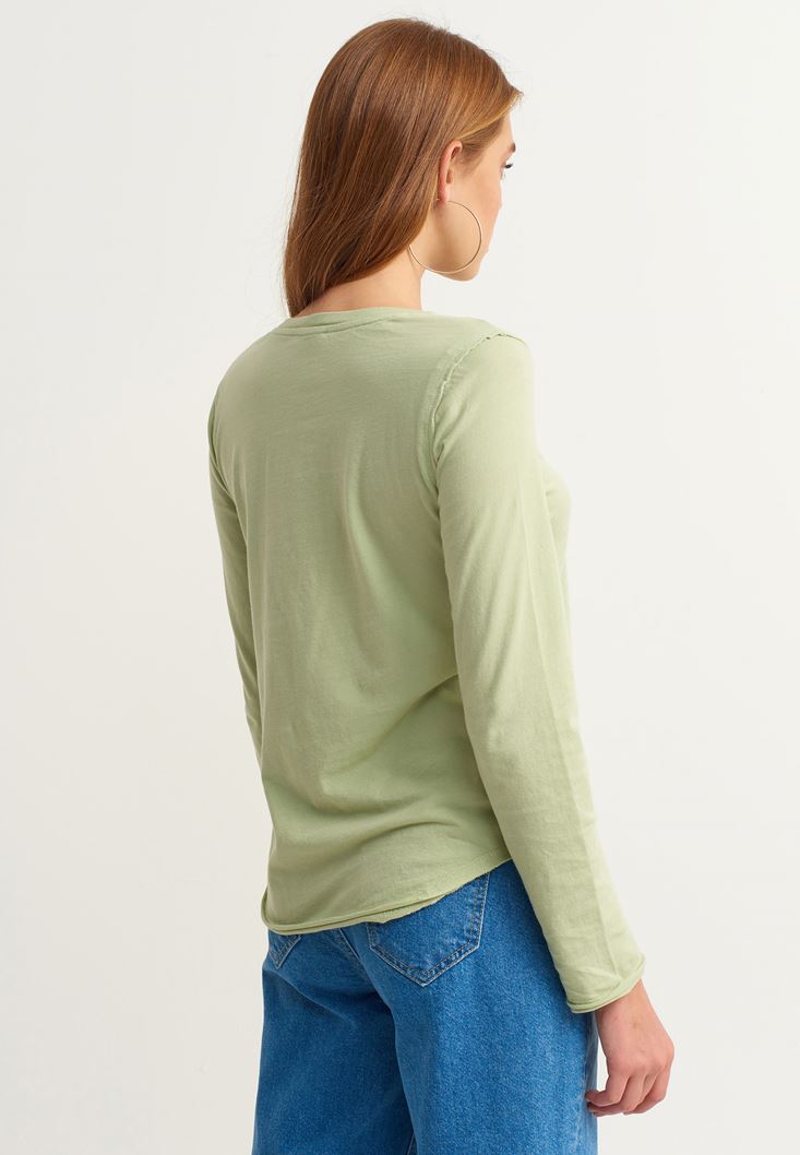 • Bayan Yeşil Zero-Neck Pamuklu Tişört