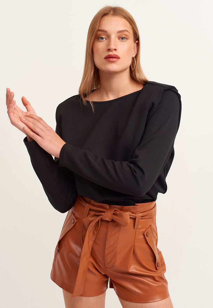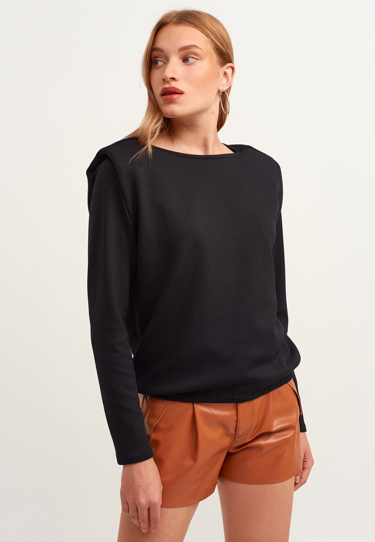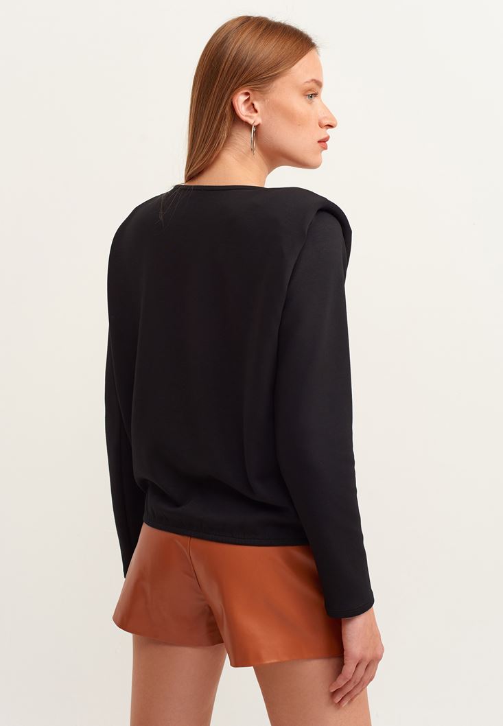 Siyah Zero-Neck Vatkalı Sweatshirt