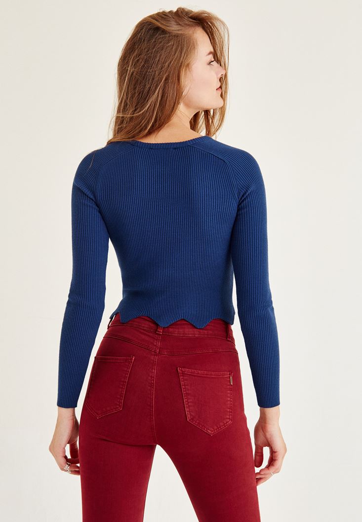 Mavi Zigzag Kesimli Triko