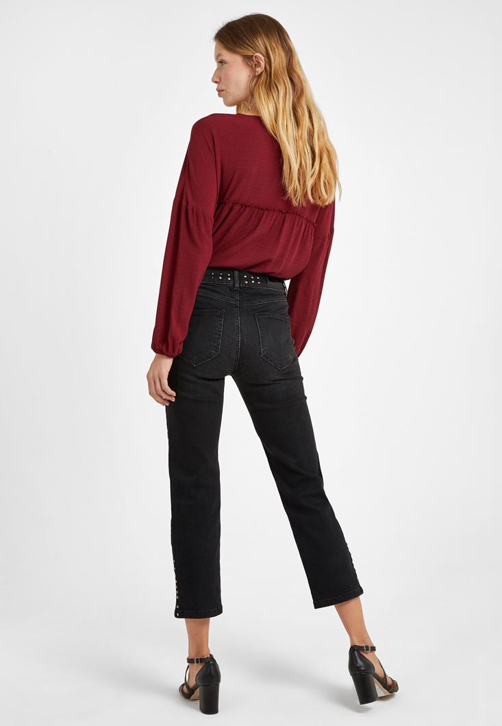 Siyah Zımba Detaylı Denim Pantolon
