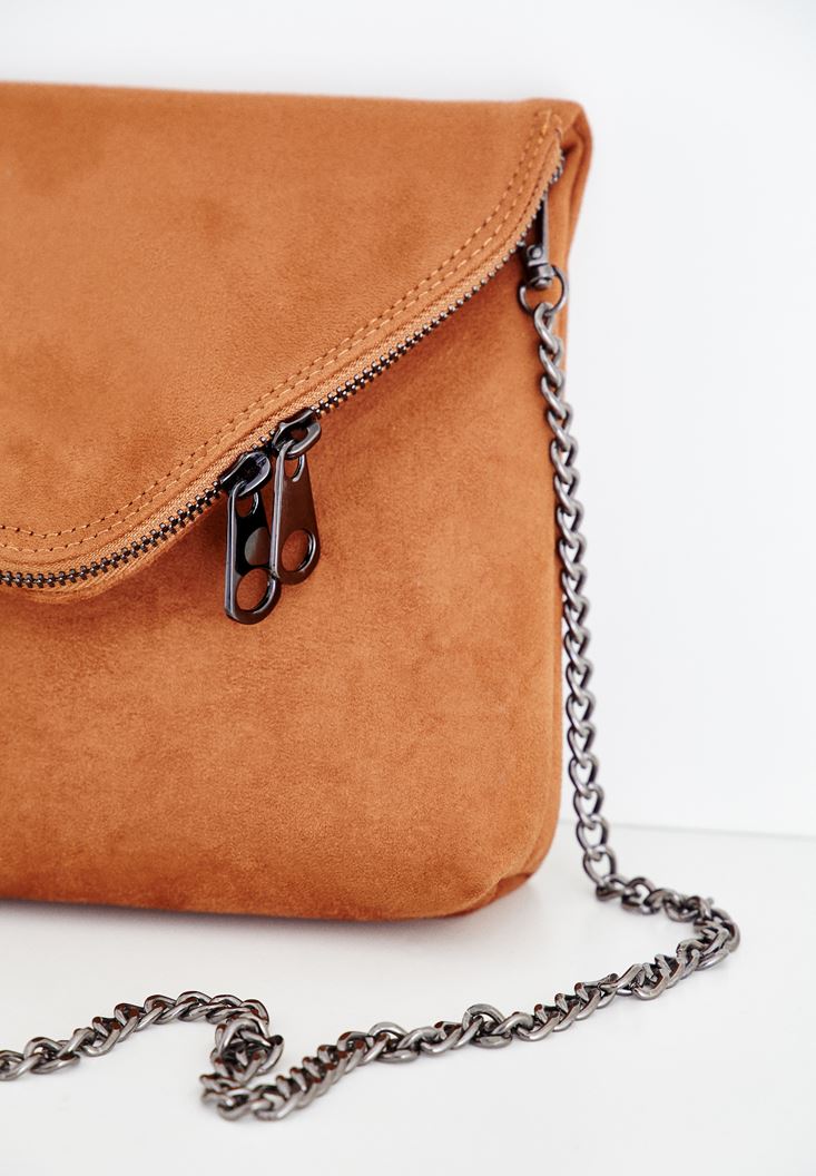 Kahverengi Zincir Askılı Süet Çanta