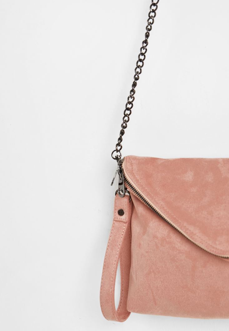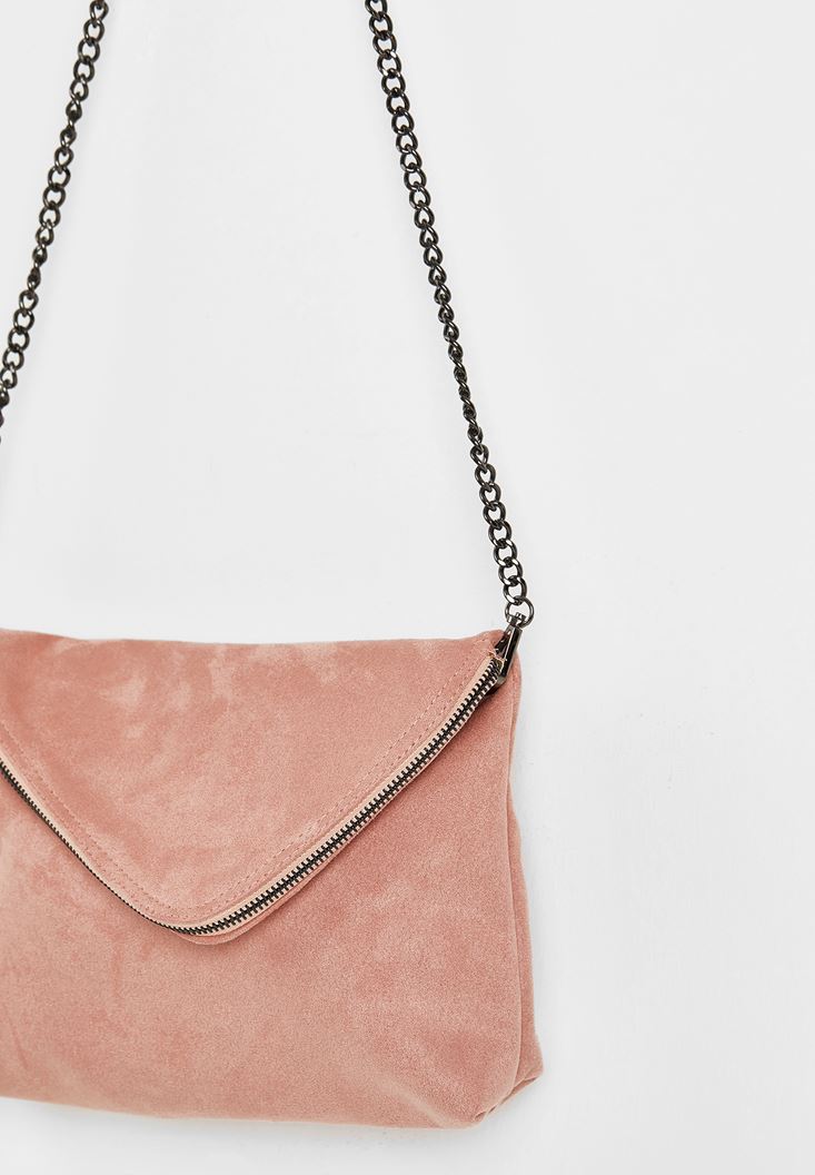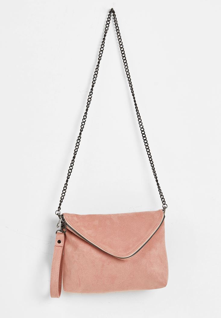 Pembe Zincir Askılı Süet Çanta