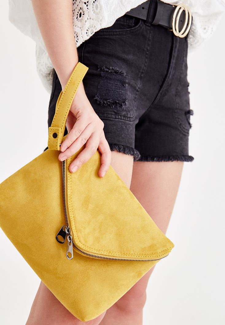 • Bayan Sarı Zincir Askılı Süet Çanta