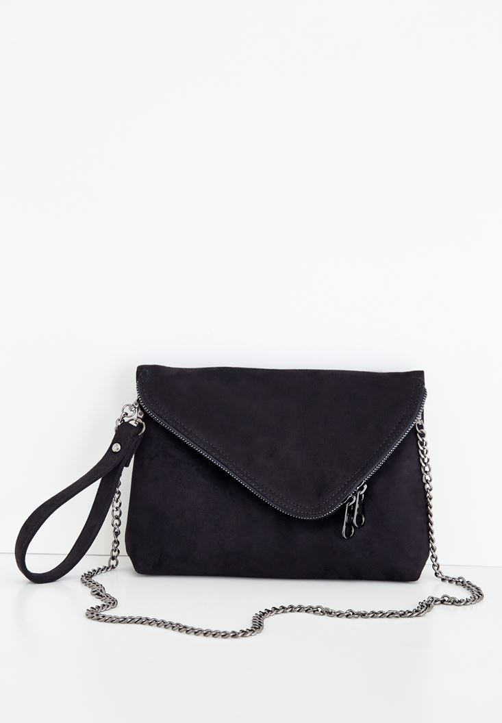 • Bayan Siyah Zincir Askılı Süet Çanta