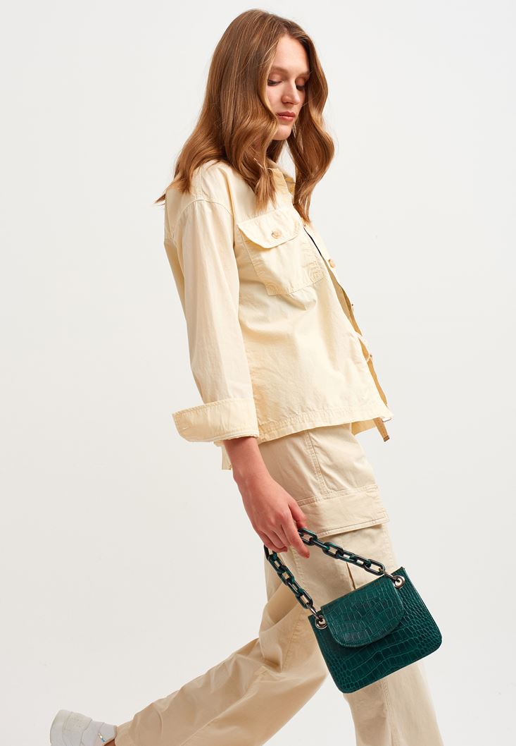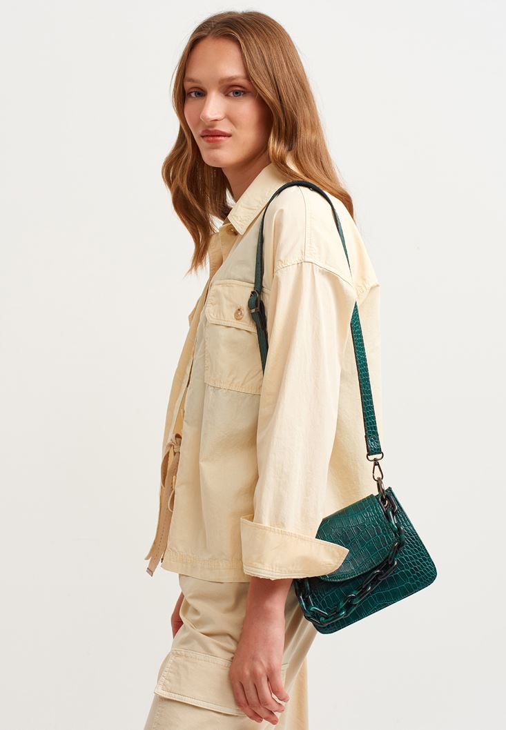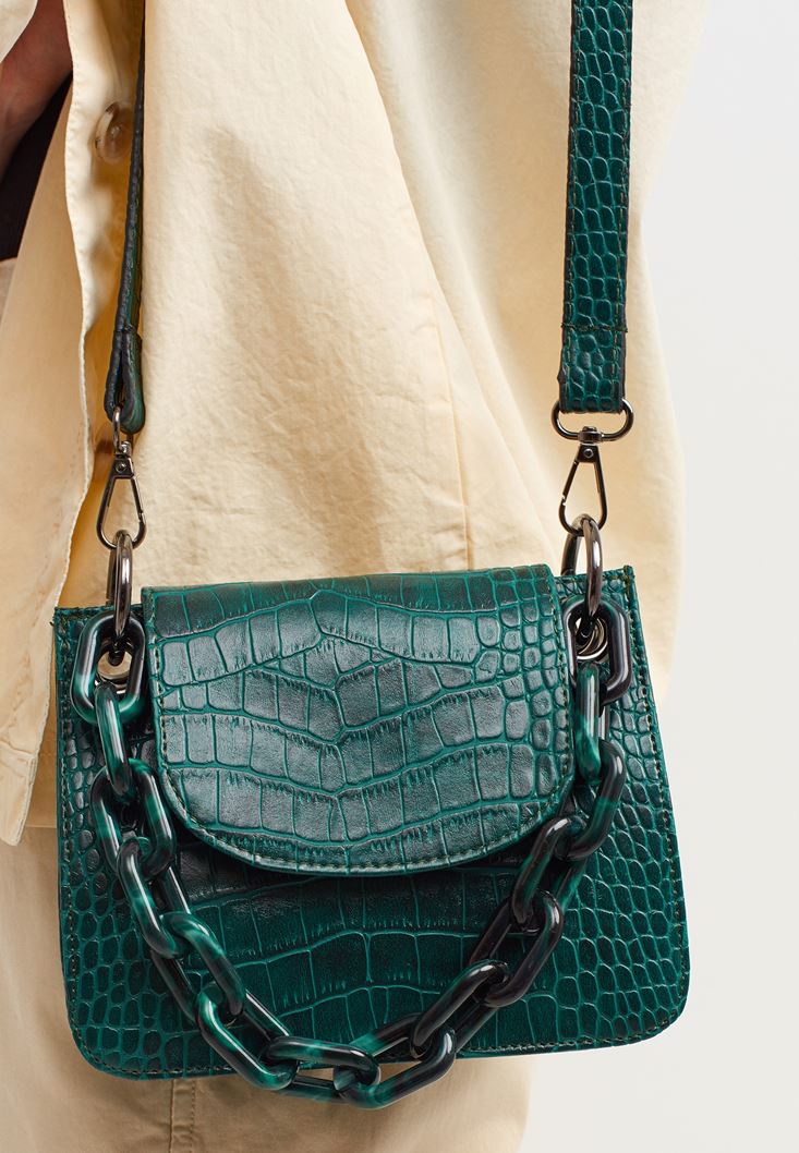 Yeşil Zincir Detaylı Askılı Çanta
