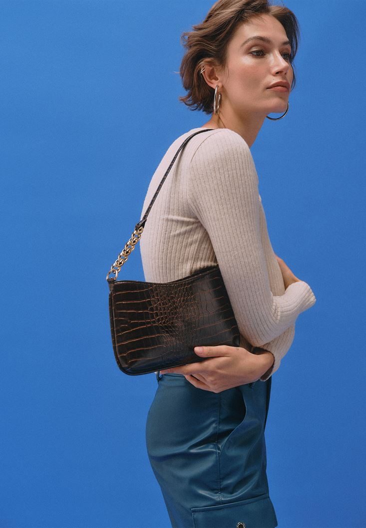 Kahverengi Zincir Detaylı Askılı Çanta