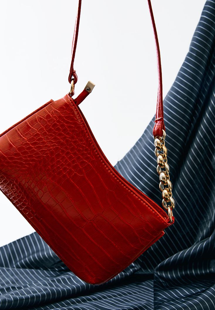 • Bayan Kırmızı Zincir Detaylı Askılı Çanta