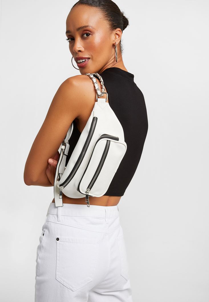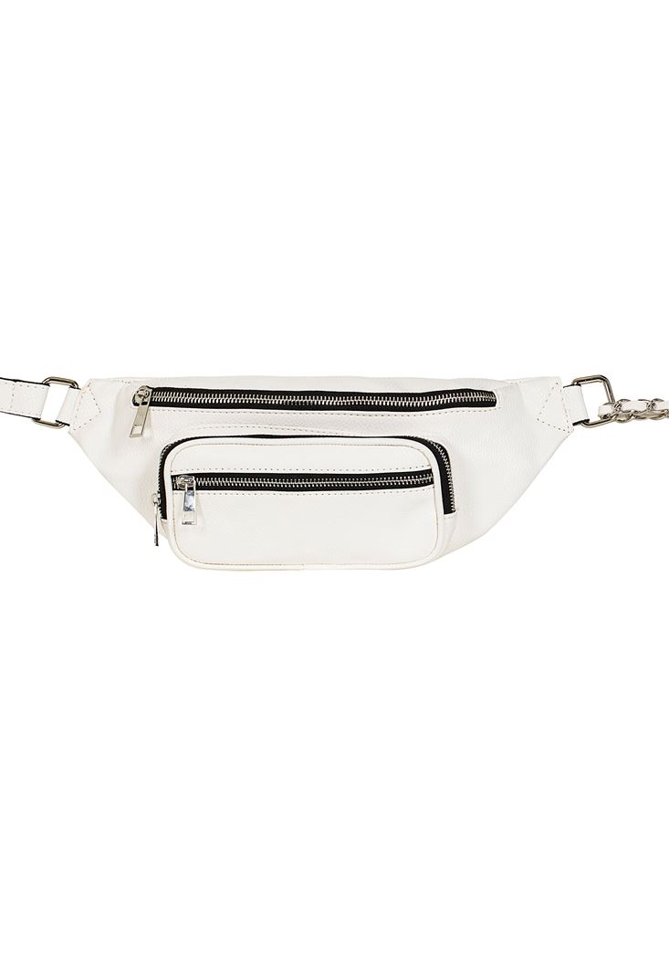 • Bayan Beyaz Zincir Detaylı Bel Çantası